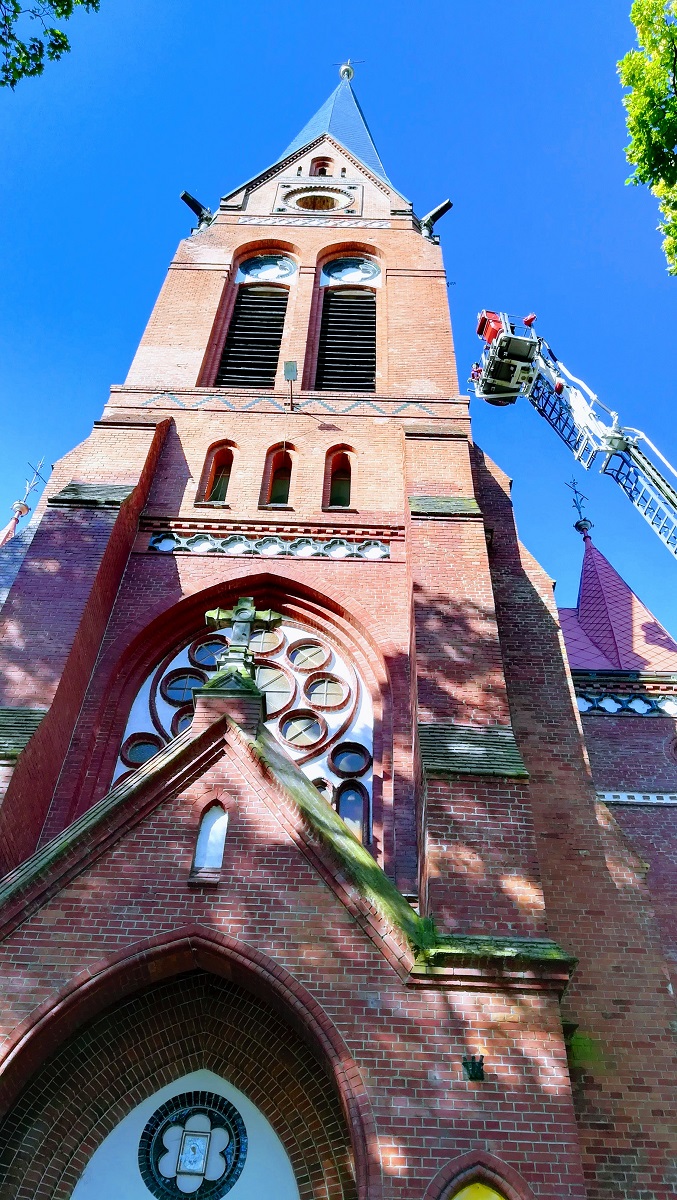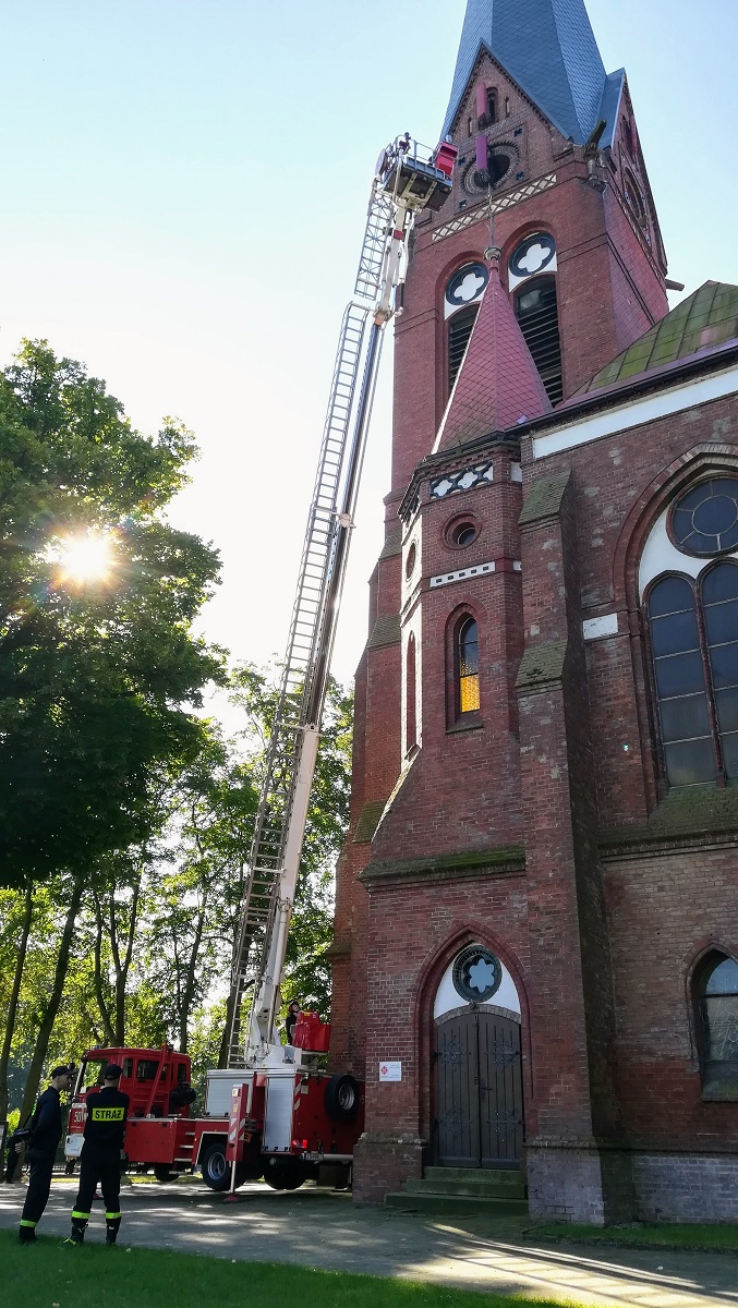 Budynek kościoła jest największym zabytkowym obiektem sakralnym na terenie powiatu polickiego z wieżą o wysokości 63 m. W trakcie kontroli odbyły się ćwiczenia obiektowe, w których strażacy JRG sprawdzili możliwości i warunki prowadzenia działań ratowniczo-gaśniczych z zewnątrz budynku oraz przeprowadzili rozpoznanie wewnątrz obiektu.