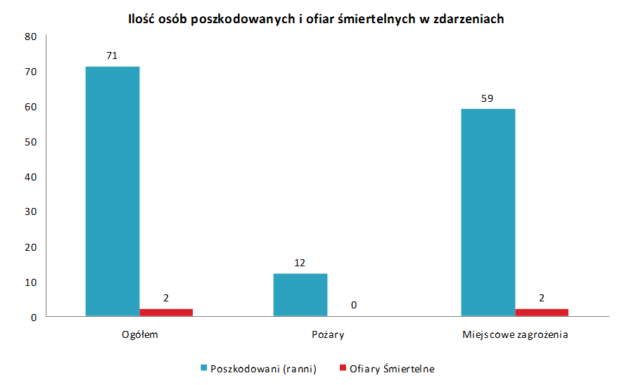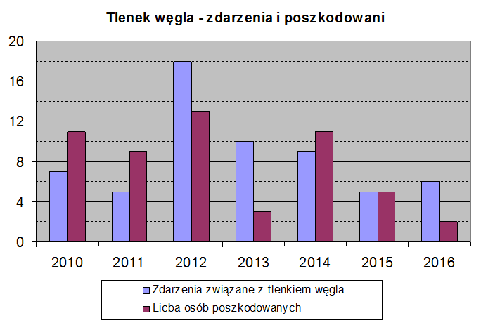 - odnotowano najmniejszą liczbę poszkodowanych w zdarzeniach związanych z tlenkiem węgla od 7 lat (2 osoby);