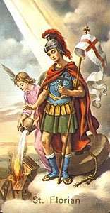 Św. Florian z Lauriacum - żołnierz i urzędnik cesarza rzymskiego, męczennik. Według tradycji był rzymskim oficerem, który stanął w obronie prześladowanych chrześcijan. Został za to strącony z kamieniem u szyi do rzeki Anizy.