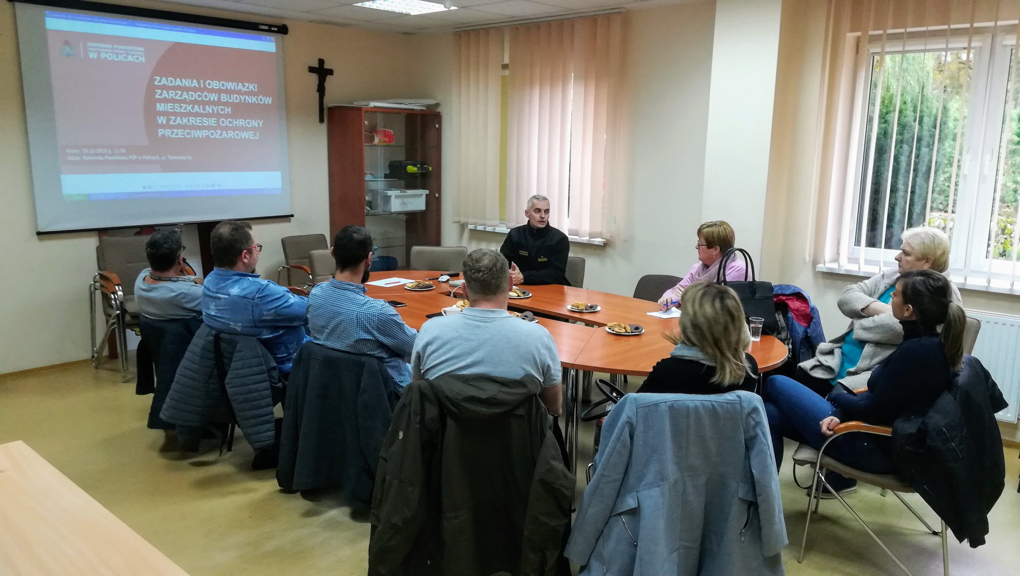 30 października w siedzibie Komendy Powiatowej Państwowej Straży Pożarnej w Policach odbyło się szkolenie z zakresu bezpiecznego użytkowania budynków mieszkalnych wielorodzinnych w okresie grzewczym. Prelekcje skierowane były dla pracowników spółdzielni i innych zarządców budynków z terenu powiatu polickiego.