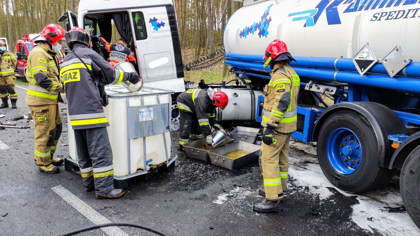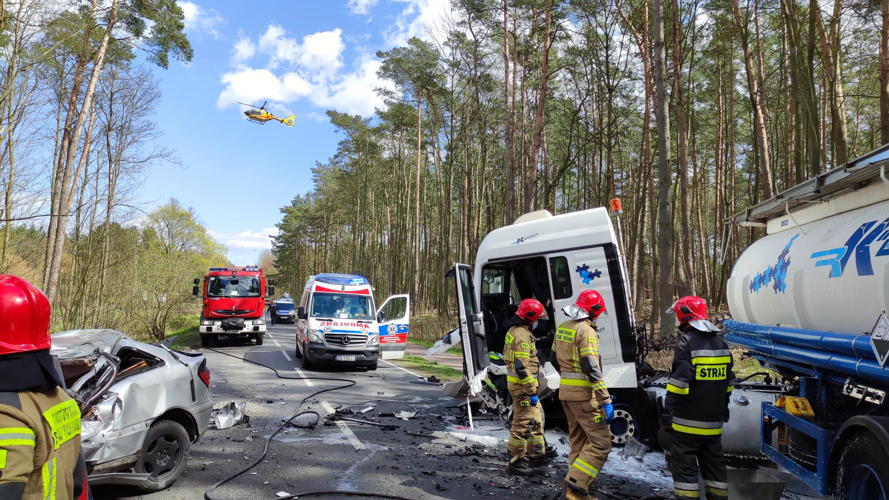O godz. 13.45 na drodze wojewódzkiej nr 114 w pobliżu miejscowości Trzeszczyn doszło do zderzenia czołowego samochodu osobowego z cysterną. Śmierć na miejscu poniosła kobieta kierująca pojazdem osobowym, natomiast ranny kierowca ciężarówki został przewieziony do szpitala. Działania ratownicze polegały na likwidacji wycieku paliwa z uszkodzonego zbiornika ciężarówki oraz zabezpieczeniu miejsca zdarzenia. Droga na danym odcinku przez ponad 2 godziny była całkowicie zablokowana.