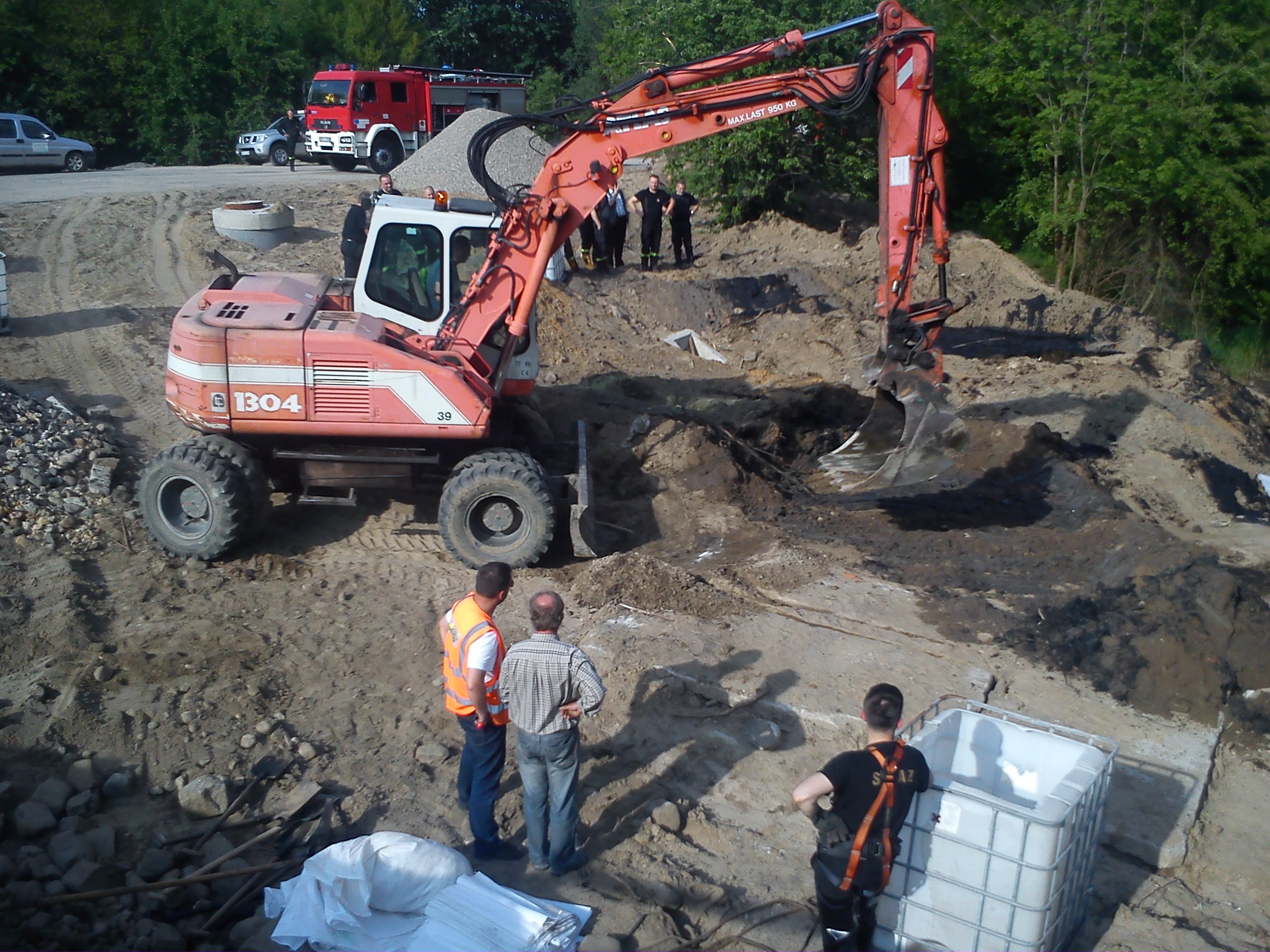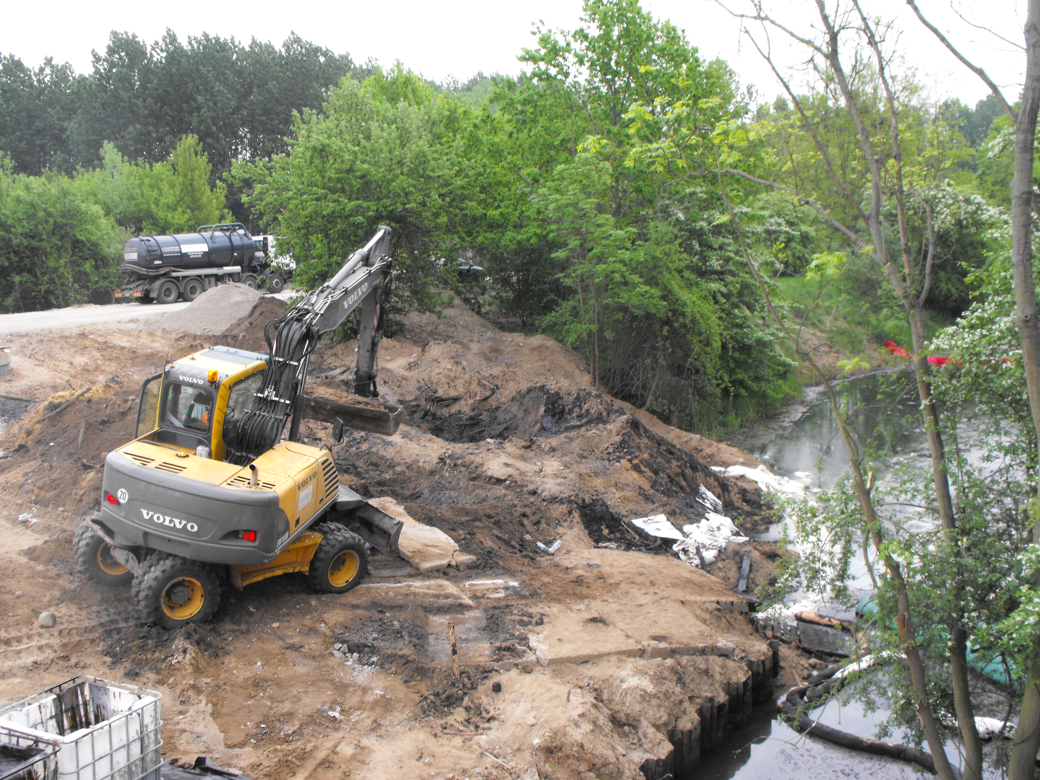 18.05.2013r. od godz. 7.00 substancję wybierano za pomocą koparki na kontener i przewożono do firmy zajmującej się utylizacją. Łącznie wywieziono około 36,5 tony zanieczyszczonej ziemi oraz 9,2 tony płynnej mazi ropopochodnej. Miejsce po wybraniu zanieczyszczonej ziemi na skarpie zasypano i wyrównano.
