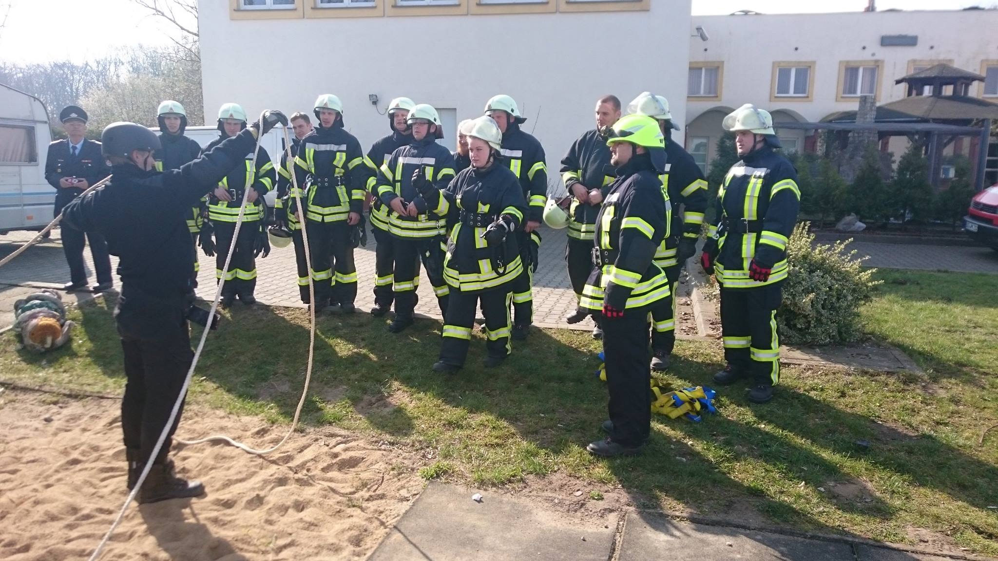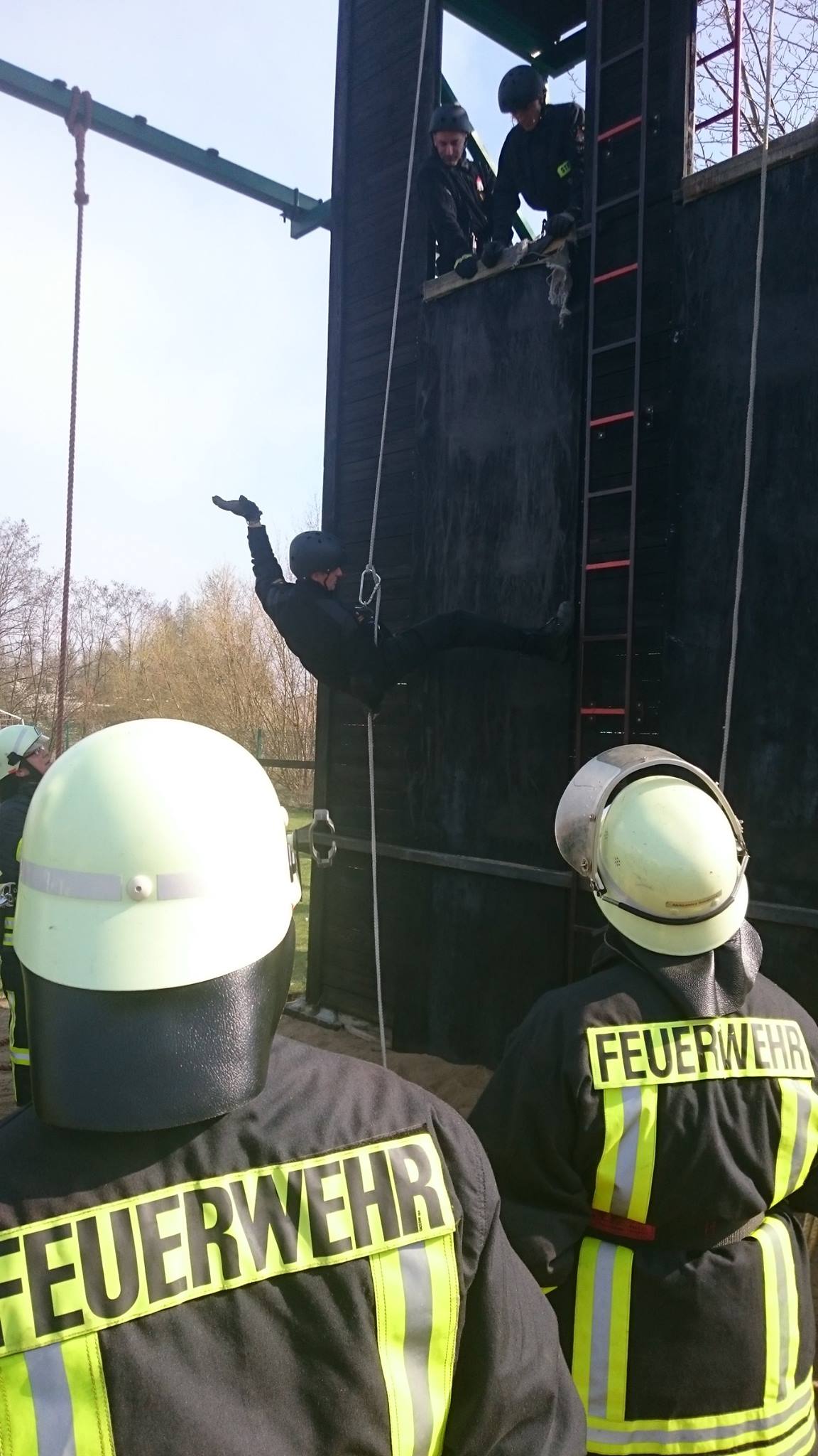9 kwietnia na terenie komendy odbyły się warsztaty doskonalące z technik ratownictwa wysokościowego, w których brali udział niemieccy strażacy z Penkun.