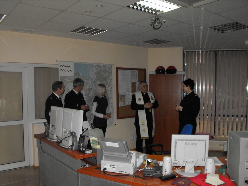 W siedzibie Komendy Powiatowej PSP w Policach w dniu 09.12.2009 r. odbyło sie spotkanie opłatkowe strażaków PSP z ks. kapelanem Ryszardem Szczygłem. Po wspólnej modlitwie nastąpiło tradycyjne połamanie sie opłatkiem. Strażacy życzyli sobie aby dopisało im zdrowie i szczęśliwie wracali do koszar z każdej akcji.