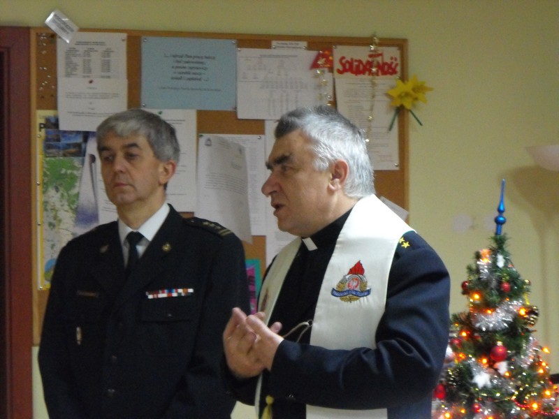 Wizyta Wigilijna Księdza Kapelana strażaków st. kpt. Ryszarda Szczygła w KP PSP Police.