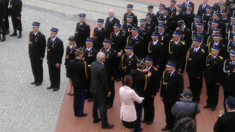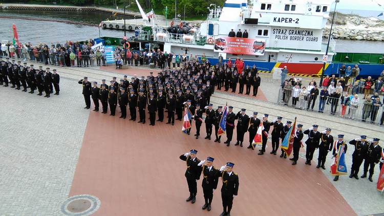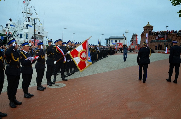 Po zakończeniu mszy kolumny poddziałów i gości przemarszowały na miejsce uroczystego apelu pod pomnikiem Komandora Stanisława Mieszkowskiego przy latarni morskiej, gdzie Zachodniopomorski Komendant PSP nadbryg. Henryk Cegiełka powitał wszystkich przybyłych gości. W przemówieniu nawiązał do jubileuszu powstania XX-lecia powstania krajowego systemu ratowniczo-gaśniczego oraz do osiągnięć PSP w województwie zachodniopomorskim. W kolejnej części obchodów wręczono osobom zasłużonym odznaczenia państwowe i resortowe oraz awanse na wyższe stopnie służbowe. W tym gronie byli również funkcjonariusze z Komendy Powiatowej PSP w Policach.