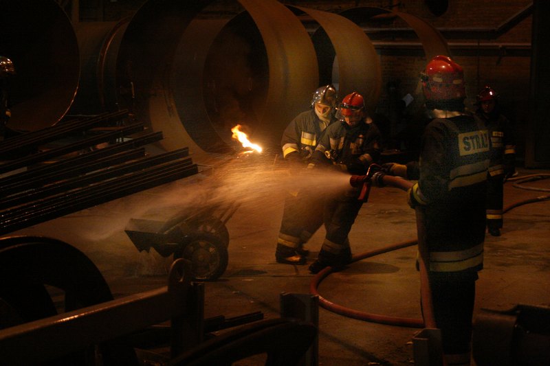 Na miejsce zdarzenia zostały zadysponowane zastępy straży pożarnej z JRG Police oraz z Zakładowej Straży Pożarnej Z. Ch. Police. Pogotowie Ratunkowe, które było pierwsze na miejscu zdarzenia udzielało pomocy medycznej wszystkim rannym. Działania zastępów straży pożarnej w pierwszej fazie polegały na ewakuacji wszystkich pracowników oraz osób postronnych z hali bo istniało realne zagrożenie kolejnego wybuchu, gdyż palił się acetylen z jednej z butli jak również inne butle miały ślady uszkodzeń. Następnie wyłączono główny wyłącznik prądu, po czym podano 2 prądy gaśnicze na palącą się butlę z acetylenem w celu schłodzenia jej. W trakcie działań prowadzone były przeszukiwania hali produkcyjnej w celu odnalezienia kolejnych ofiar oraz wyjść z hali aby przewentylować i oddymić pomieszczenia. Na miejsce akcji przyjechał Komendant Powiatowy PSP w Policach bryg. Dariusz Uchto i przejął kierowanie działaniami ratowniczo-gaśniczymi. Osoba najciężej ranna została przetransportowana do szczecińskiego szpitala śmigłowcem Lotniczego Pogotowia Ratunkowego a 3 pozostałe osoby ranne zostały przewiezione karetkami pogotowia ratunkowego. Po wypaleniu się acetylenu w butli i rozpoczęciu się procesu spalania substancji porowatej wraz z acetonem wyciągnięto butlę z hali oraz włożono ją do beczki, do której była tłoczona woda. Na miejscu akcji był problem z zaopatrzeniem wodnym, gdyż nie było w pobliżu zakładu hydrantu zewnętrznego i trzeba było wodę dowozić samochodami gaśniczymi.