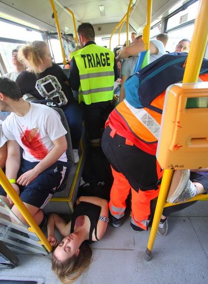 Scenariusz przewidywał zderzenie lokomotywy z autobusem komunikacji miejskiej i samochodem osobowym, w wyniku którego poszkodowanych zostało kilkadziesiąt osób. W ćwiczeniach oprócz organizatorów uczestniczyli strażacy z OSP w Trzebieży i Tanowie, Policja i uczniowie klas pożarniczych z Zespołu Szkół w Policach. Działania ratowników polegały na zabezpieczeniu miejsca zdarzenia, segregacji rannych, uwolnieniu zakleszczonych osób z samochodu osobowego, ewakuacji poszkodowanych do strefy bezpiecznej i transportu rannych ambulansami.