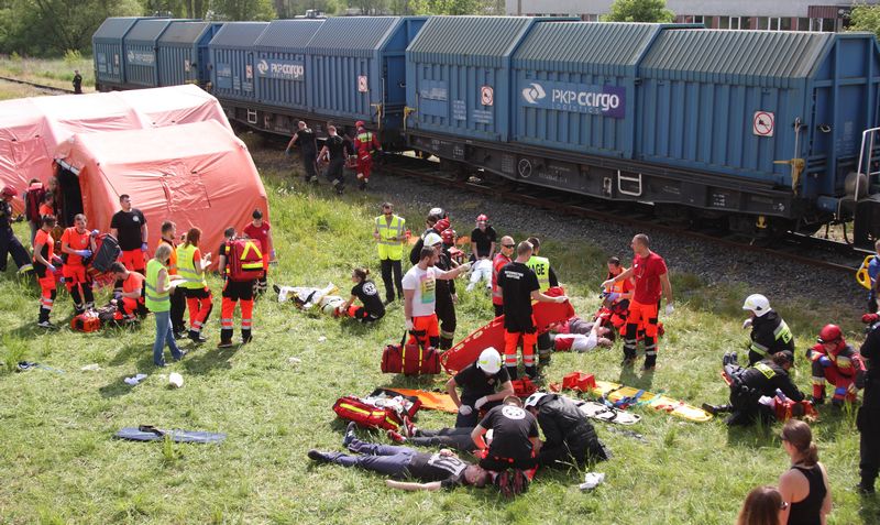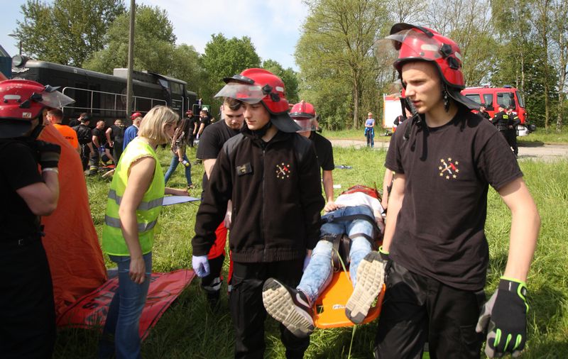 Na przejeżdzie kolejowym na bocznicy zakładów chemicznych w Policach odbyły się ćwiczenia, które zorganizowali wspólnie strażacy z KP PSP w Policach oraz pracownicy i studenci Pomorskiego Uniwersytetu Medycznego w Szczecinie.