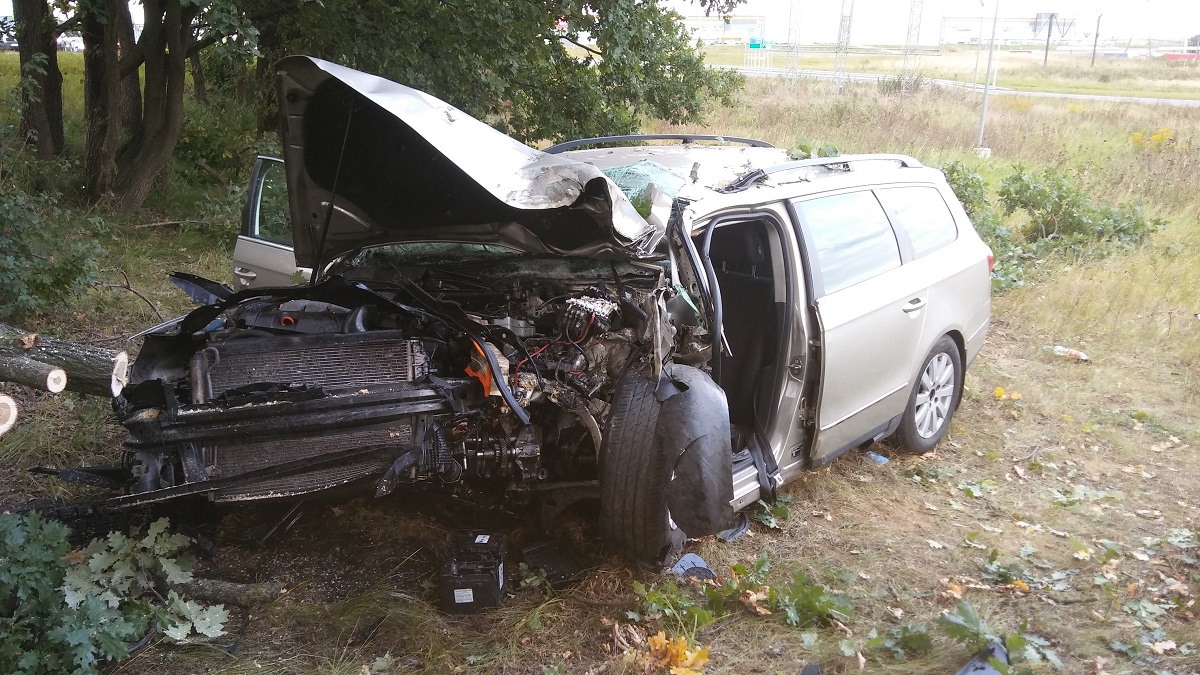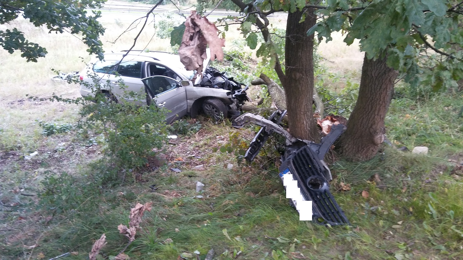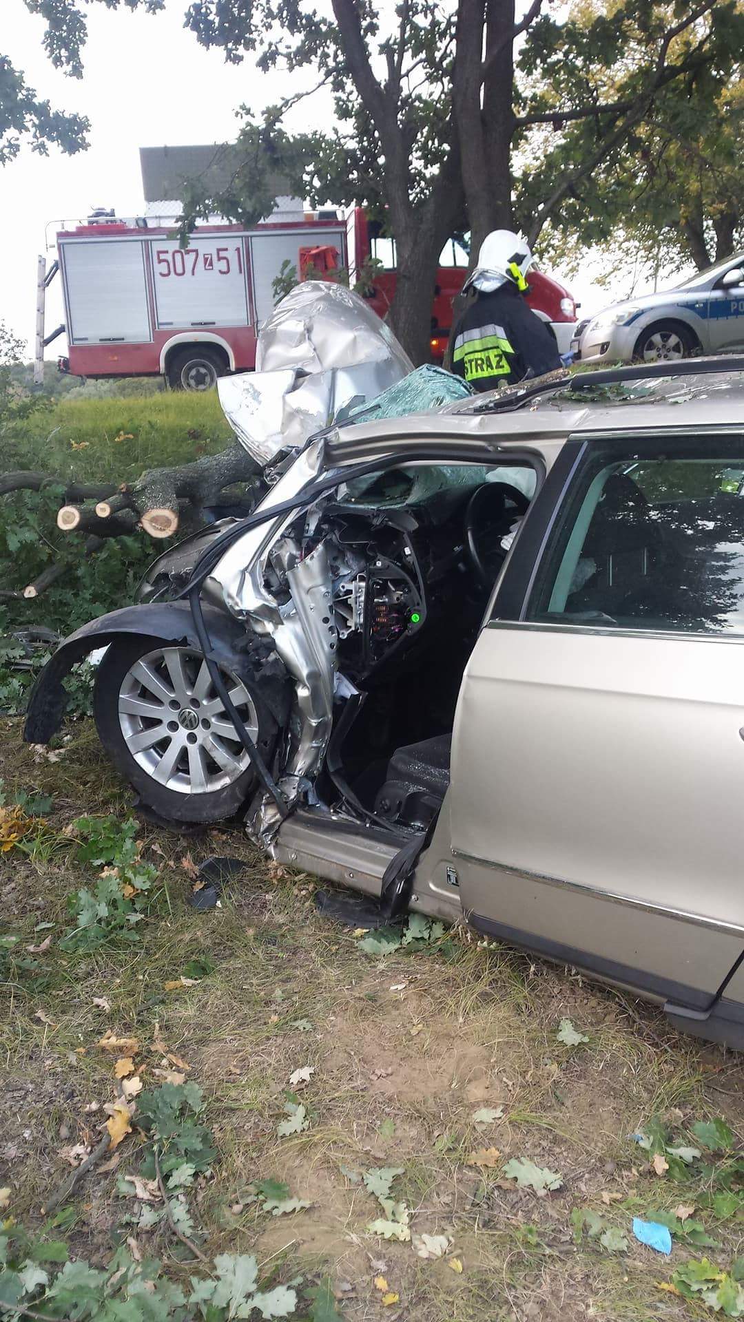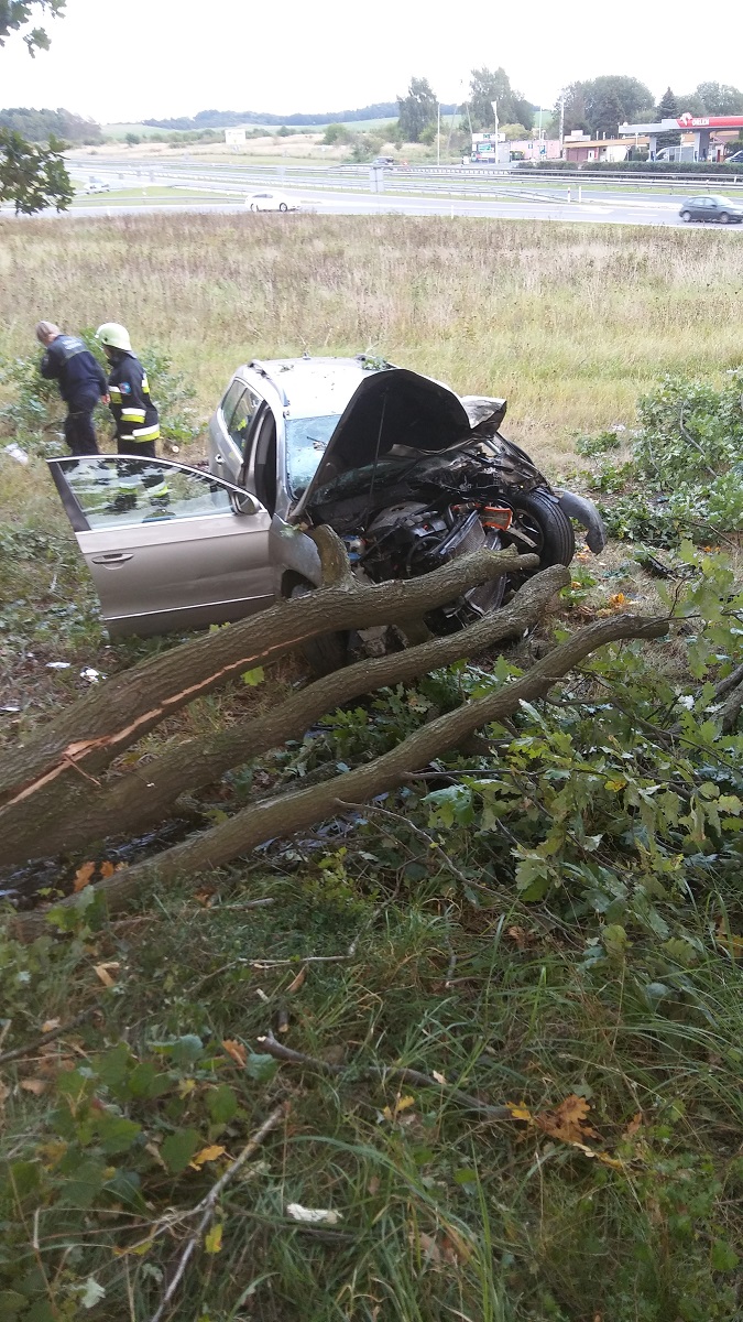 Pojazd uderzył w przydrożne drzewo, po czym wpadło do rowu i na skutek uderzenia, drzewo złamało się i spadło na dach auta. Na miejsce zadysponowano zastępy z OSP Kołbaskowo i OSP Smolęcin, które realizowali działania związane z uwolnieniem dwóch osób znajdujących się w aucie. Na miejsce były Zespoły Ratownictwa Medycznego, które udzieliły kwalifikowanej pierwszej pomocy oraz funkcjonariusze Policji, którzy wyłączyli pas ruchy na potrzeby akcji i kierowali ruchem.