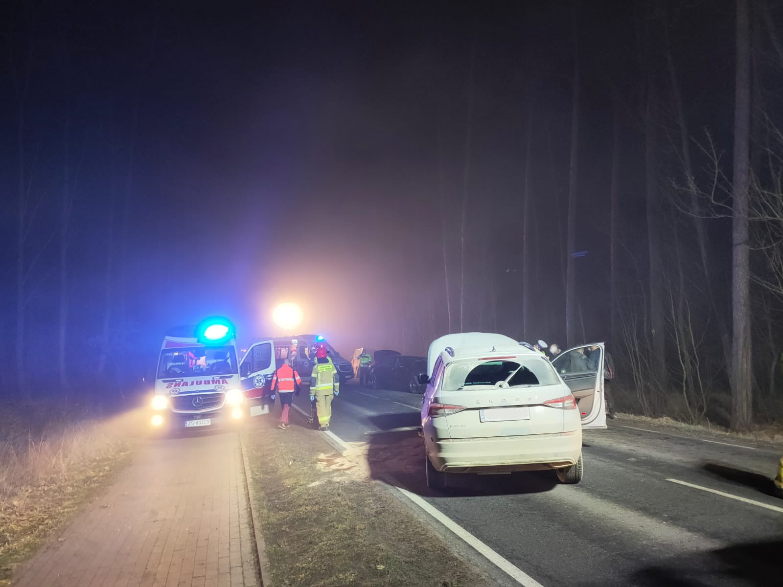 O godz. 18:47 otrzymaliśmy zgłoszenie o wypadku trzech samochodów na DW nr 114 w m. Trzeszczyn. W zdarzeniu brało udział 11 osób, z czego poszkodowanych było 5 osób, w tym 4 obcokrajowców z Korei i obywatel Ukrainy. Na miejscu działały 2. zastępy z JRG Police, 4 karetki pogotowia i Policja.