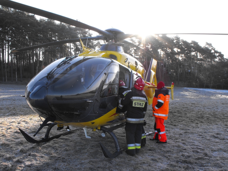 Zabezpieczenie miejsca lądowania dla śmigłowca Lotniczego Pogotowia Ratunkowego
