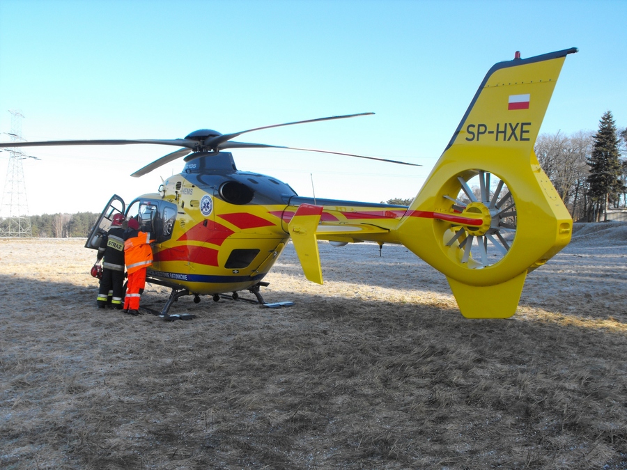 16 marca o godzinie 7.35 strażacy z Jednostki Ratowniczo-Gaśniczej w Policach wyjechali do zabepieczenia miejsca lądowania dla śmigłowca LPR, który miał przetransportować mężczyznę, który jadac trasą Szczecin-Police zjechał z drogi wskutek zatrzymania akcji serca.