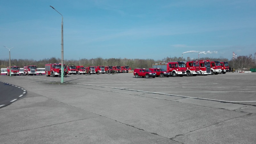 - miejsce na północ od strefy tj. teren zakładu GA POLICE z ilością 7 zastępów i 17 strażaków oraz karetką pogotowia z Medika (SiŚ Zakładowej Straży Pożarnej GA POLICE).