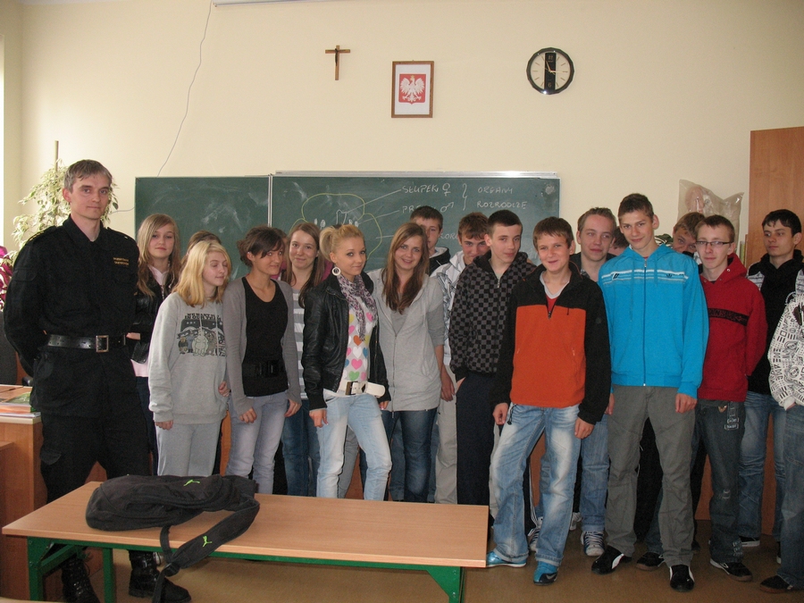 Kilku uczniów tej klasy wzajemnie podpalało sobie włosy, ubrania, rzucało podpalone kartki itp. Zaproszony na zajęcia, st. kpt. Przemysław Grzybowski, mówił o zagrożeniach związanych z nieostrożnym obchodzeniem się z ogniem otwartym, zasadach gaszenia płonącego na człowieku ubrania, oparzeniach oraz zachęcał "zafascynowanych" ogniem gimnazjalistów do kontynuowania edukacji w klasie pożarniczej, która w tym roku zostanie utworzona w Zespole Szkół im. Łukasiewicza w Policach.