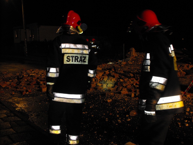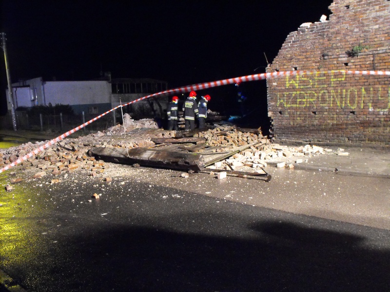 Uszkodzona została skrzynka elektryczna. Działania zastępów straży pożarnej polegały na zabezpieczeniu miejsca zdarzenia, przeszukaniu gruzowiska w celu potwierdzenia braku poszkodowanych osób oraz odgruzowaniu powierzchni drogi.