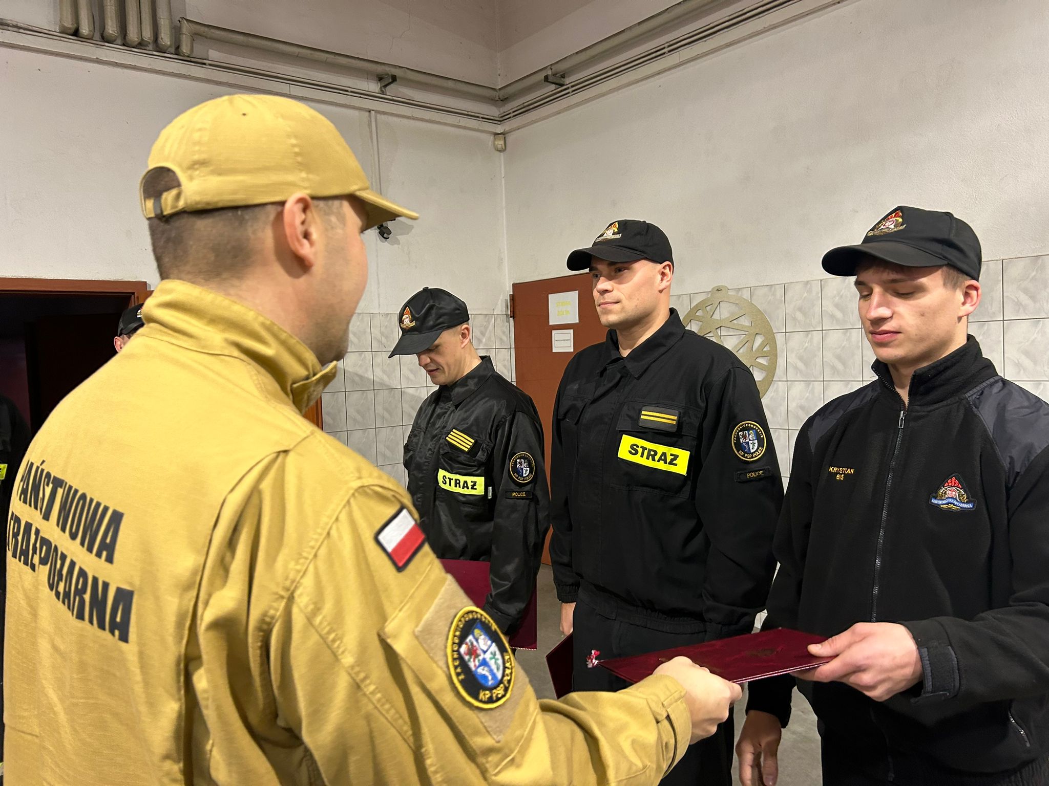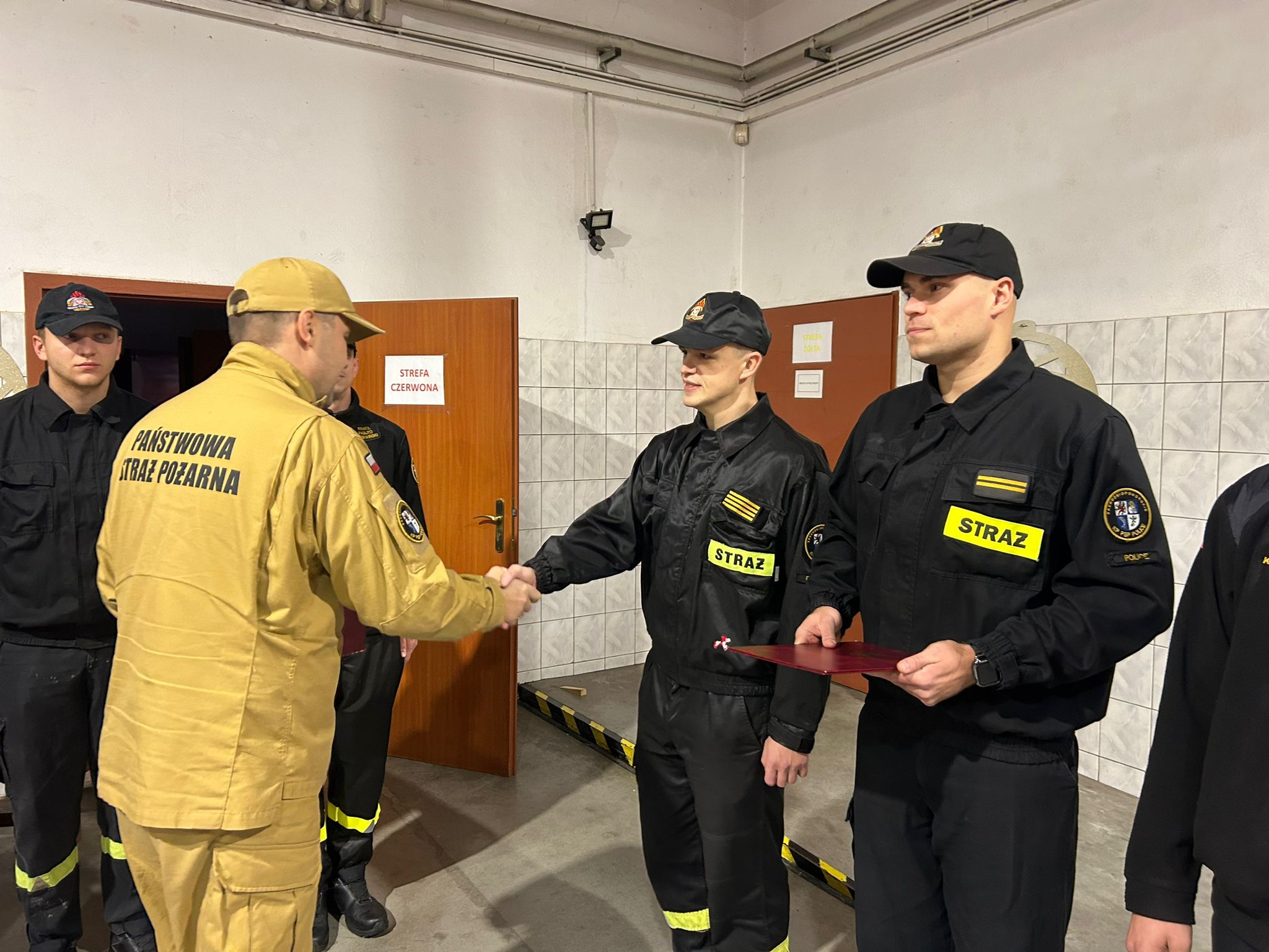 Na dzisiejszej zmianie służby Komendant Powiatowy mł. bryg. Piotr Maciejczyk wręczył zwycięzcom nagrody finansowe.