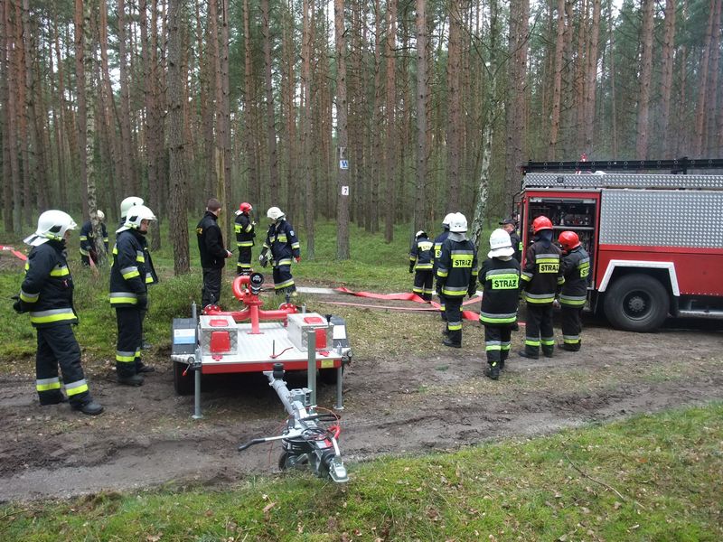 Sobota upłynęła polickim strażakom na ćwiczeniach w Puszczy Wkrzańskiej. Scenariusz zakładał pożar lasu w leśnictwie Mazańczyce. Działania strażaków polegały na zbudowaniu dwóch punktów czerpania wody z jeziora Piaski, przetłaczaniu i przepompowywaniu wody do oddalonej o około 1000 metrów asfaltowej drogi i podawaniu wody w natarciu z działek przewoźnych. W ćwiczeniach uczestniczyli strażacy z KP PSP w Policach, OSP ze wszystkich gmin naszego powiatu, leśnicy oraz kursanci szkolenia podstawowego strażaków ratowników OSP. W manewrach uczestniczyło łącznie ponad 80 strażaków i 16 pojazdów pożarniczych. Rozwinięto prawie 2 km węży tłocznych W-110.