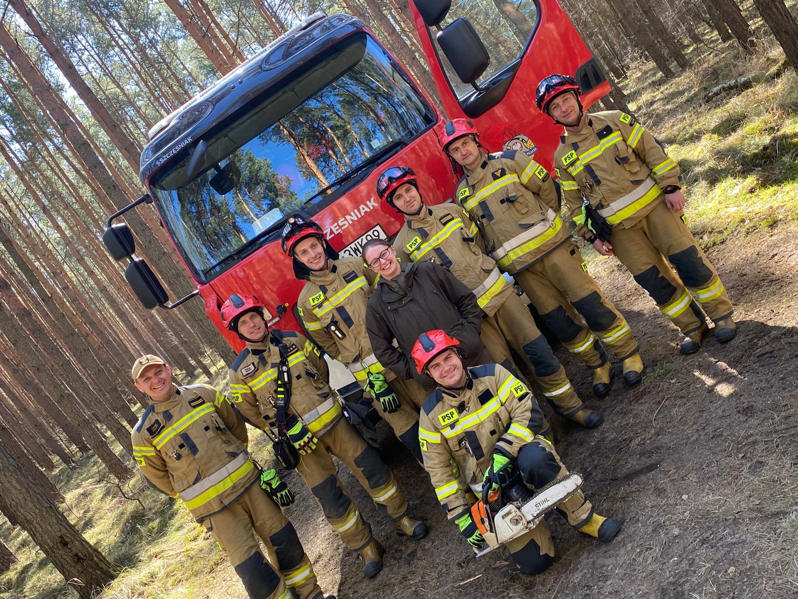 Strażacy z Komendy Powiatowej Państwowej Straży Pożarnej w Polkowicach wzięli udział w praktycznych ćwiczeniach z posługiwania się pilarką mechaniczną do cięcia drewna. Zajęcia odbyły się dzięki uprzejmości Leśnictwa Sieroszowice, a szczególne podziękowania kierujemy do pana Wojciecha Tylczyńskiego, który wsparł nas swoją wiedzą i doświadczeniem oraz udostępnił teren do ćwiczeń.