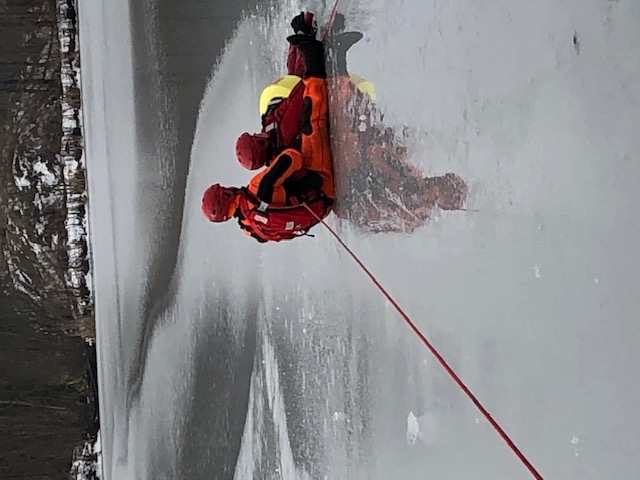 Strażacy mieli możliwość praktycznego sprawdzenia i podszlifowania swoich umiejętności wykorzystywanych podczas zdarzeń na zbiorniach zalodzonych z wykorzystaniem m.in. sań lodowych.