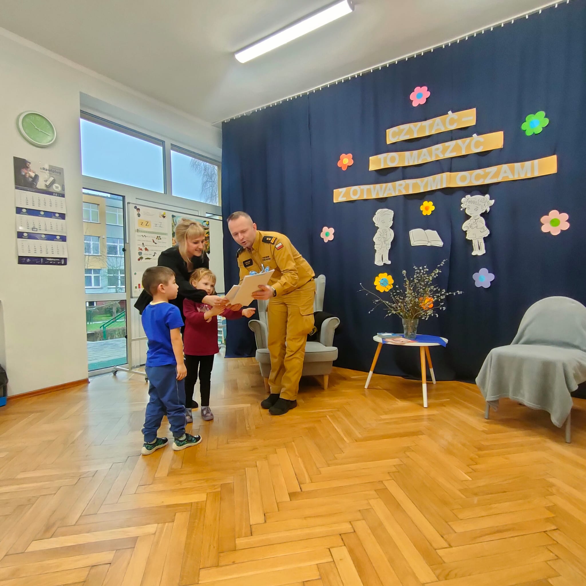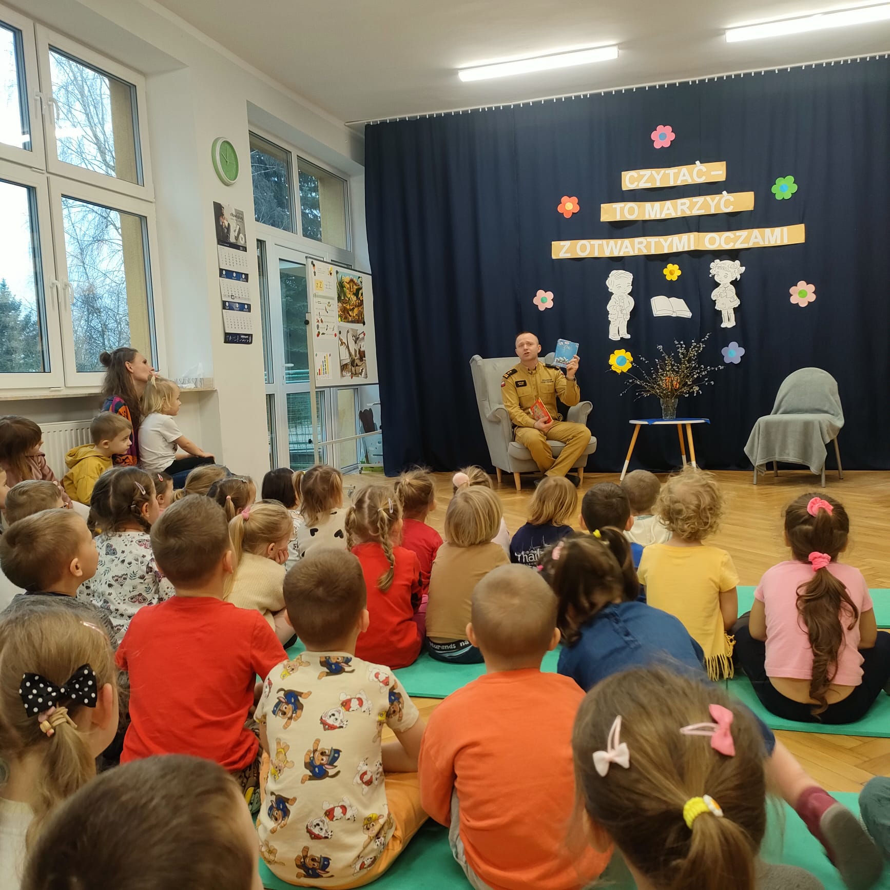 28 lutego 2024 roku na zaproszenie Dzieci z Przedszkola Miejskiego w Chocianowie bryg. Mariusz Sałata - Zastępca Komendanta Powiatowego PSP w Polkowicach, uczestniczył we wspólnym czytaniu książek w ramach projektu edukacyjnego „CZYTAĆ - TO MARZYĆ Z OTWARTYMI OCZAMI”.