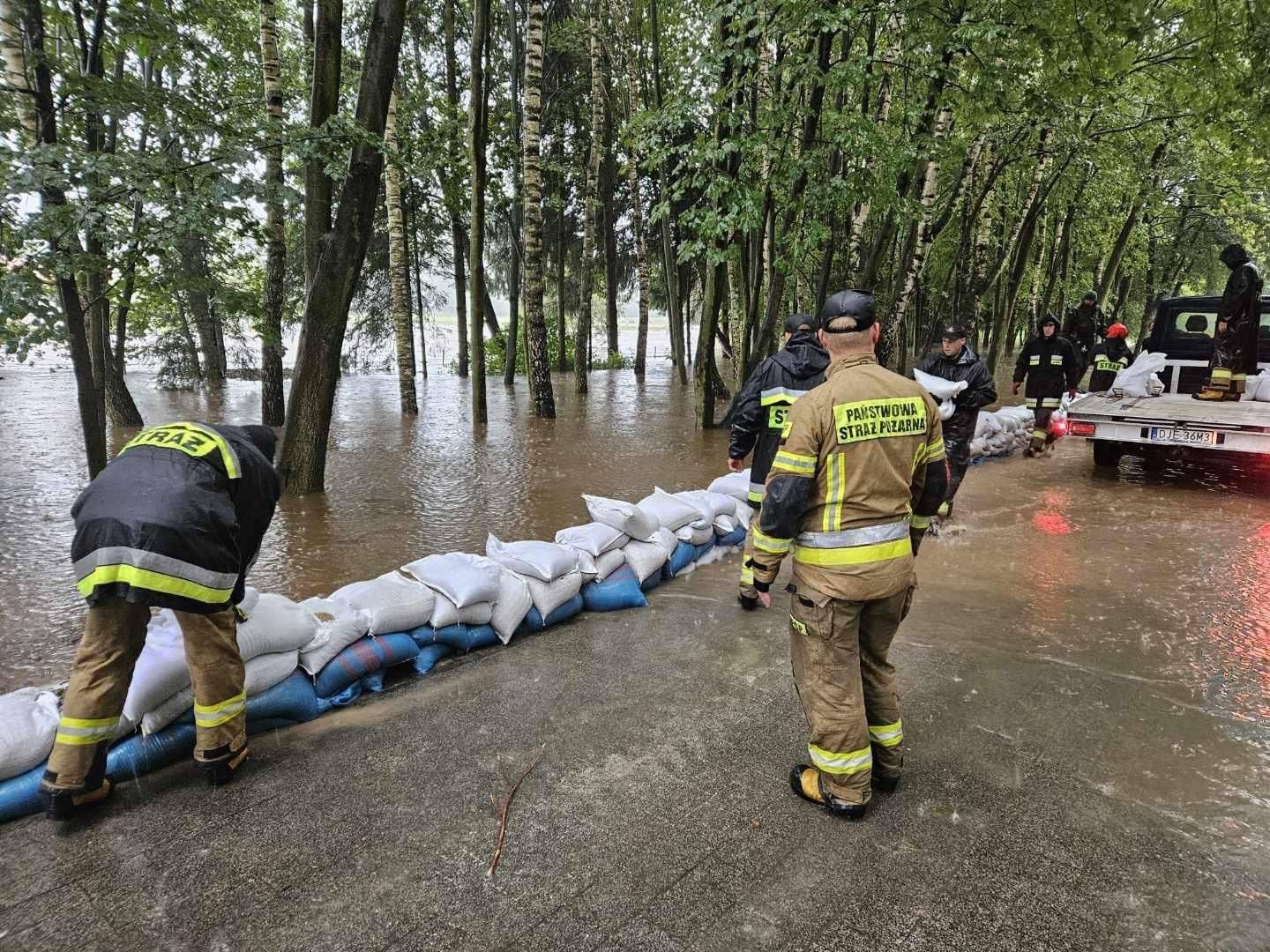 Działania strażaków KP PSP Polkowice podczas powodzi na Dolnym Śląsku.