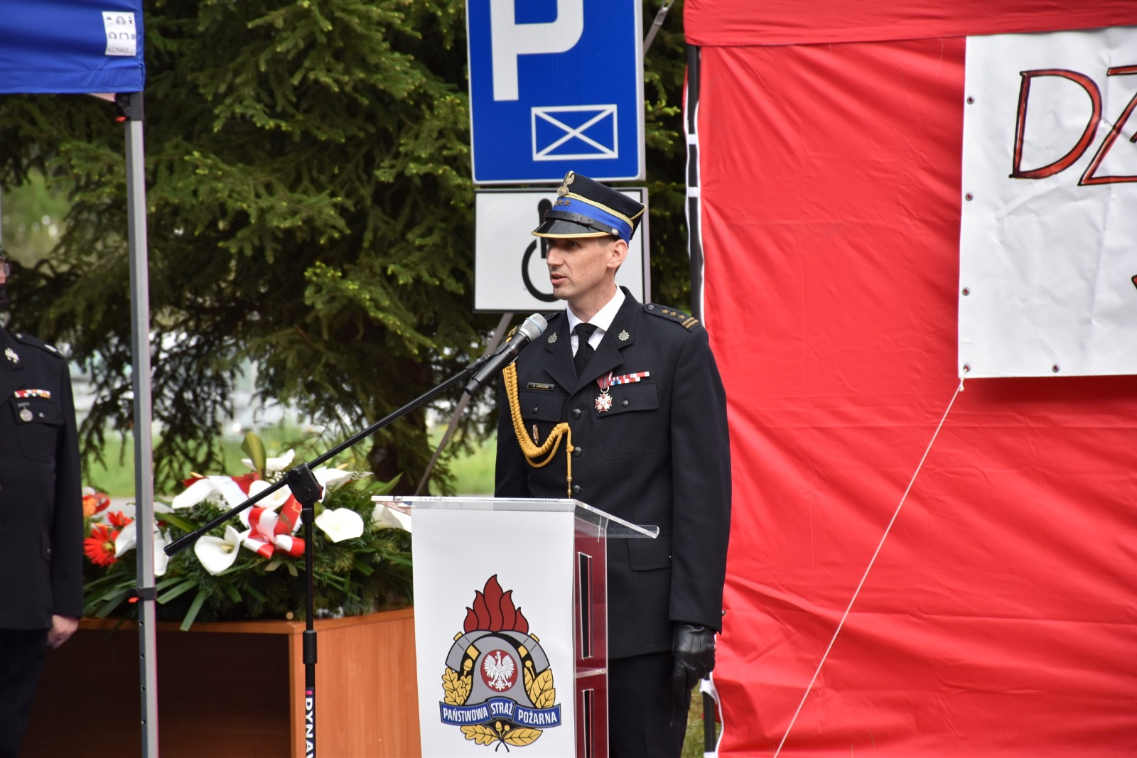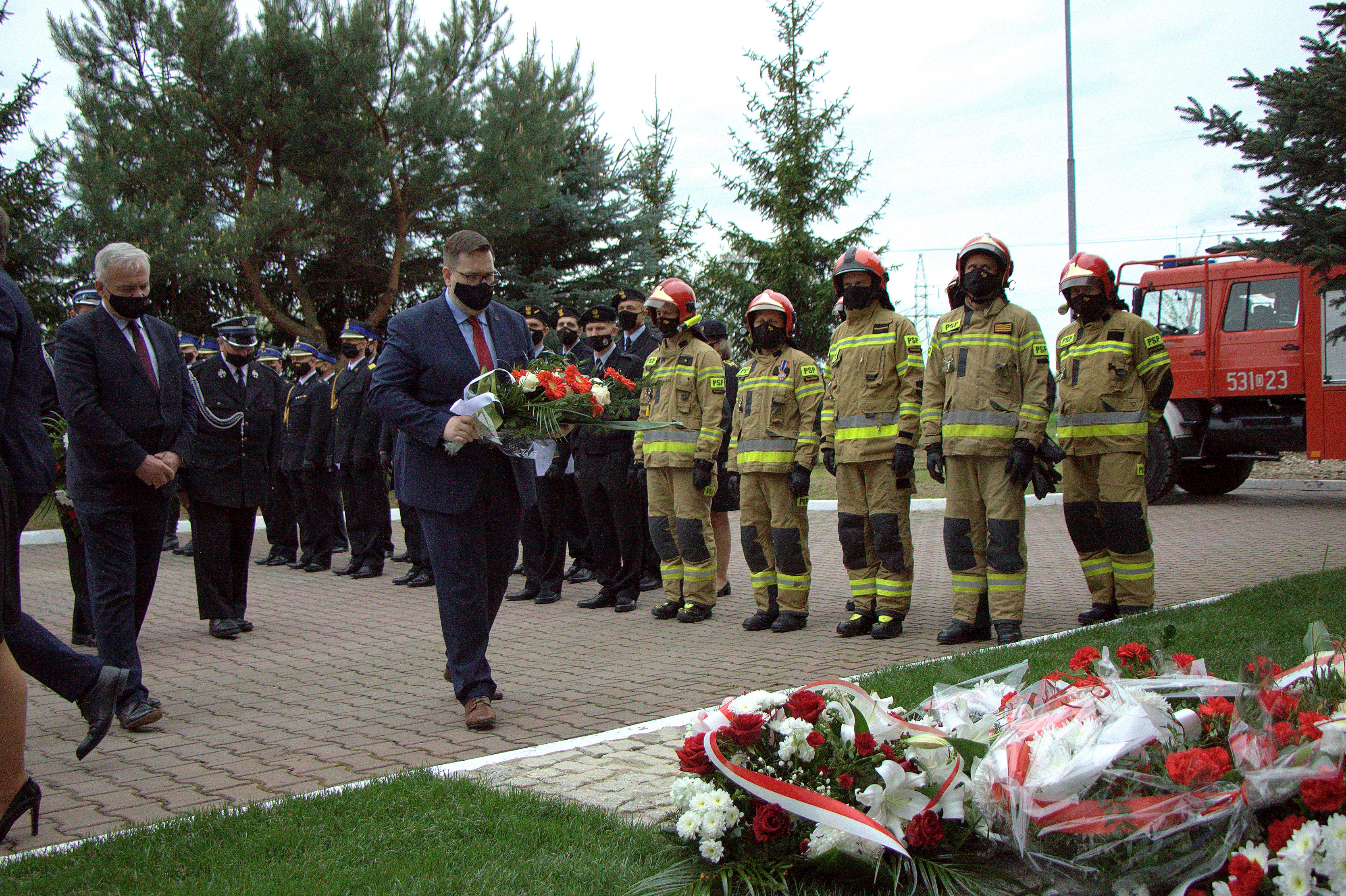 W trakcie apelu odbyło się uroczyste dokonanie aktu otwarcia dobudowanej części obiektu strażnicy i złożenie kwiatów przed pomnikiem św. Floriana – patrona strażaków.