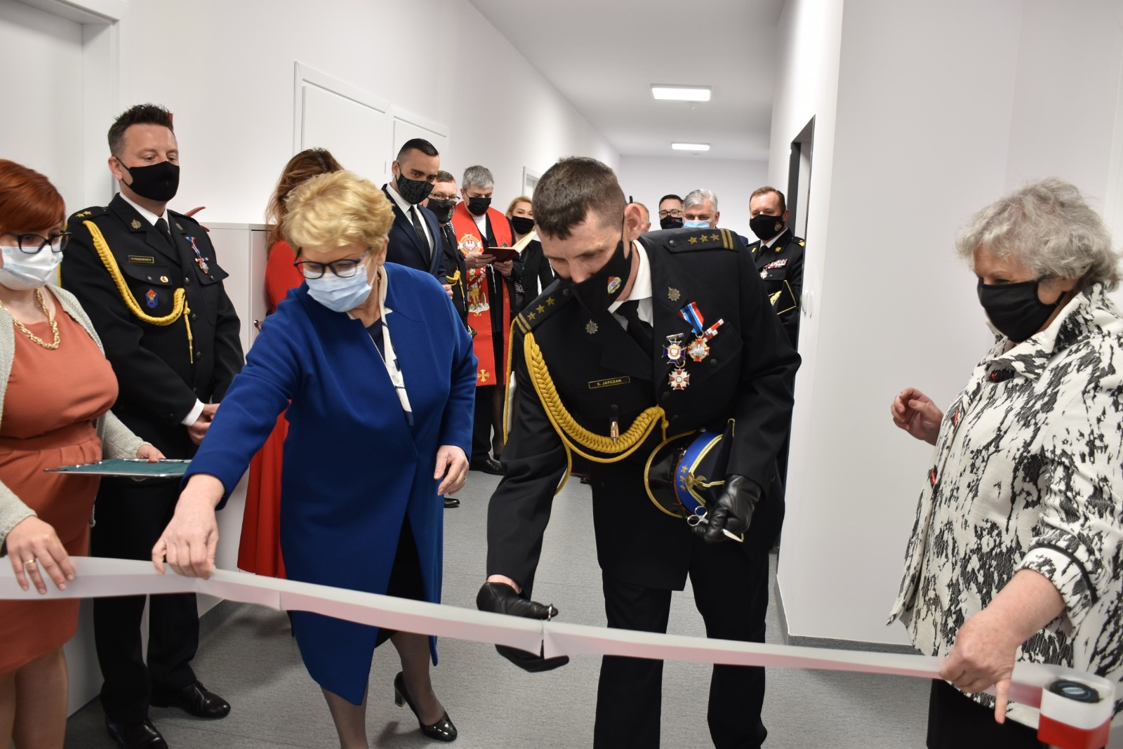 Komendant Powiatowy PSP w Polkowicach w swoim wystąpieniu podziękował osobom i instytucjom, które przyczyniły do zrealizowania inwestycji polegającej na modernizacji budynku Komendy Powiatowej Państwowej Straży Pożarnej w Polkowicach oraz życzył dużo zdrowia i pomyślności i ,,niech św. Florian nieustanie otacza Was swoją opieką”.