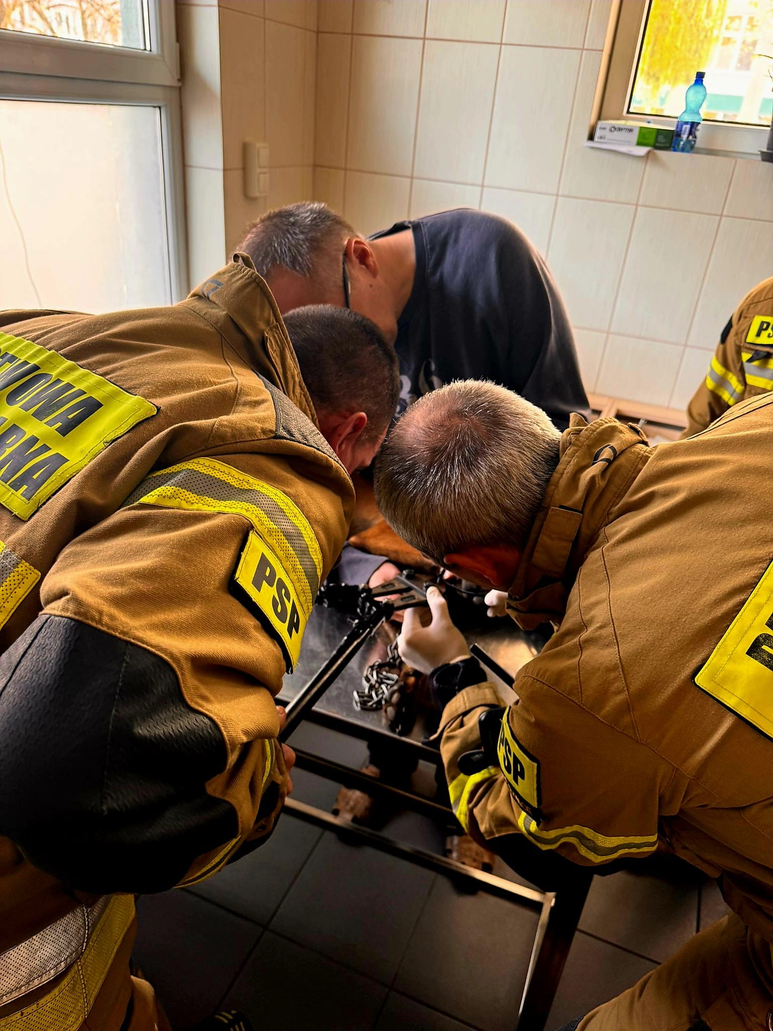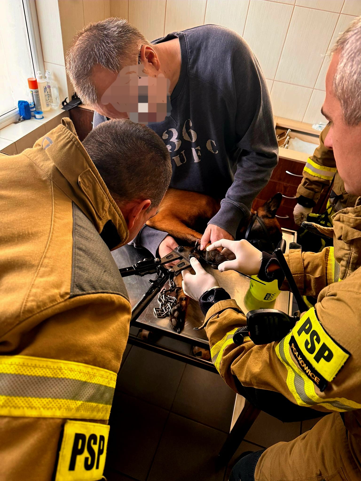 Po przybyciu na miejsce strażacy, działając w asyście lekarza weterynarii, przystąpili do precyzyjnego usunięcia elementu z łapy zwierzęcia. Wykorzystano w tym celu specjalistyczny sprzęt – nożyce do prętów – co pozwoliło na szybkie i bezpieczne uwolnienie psa.