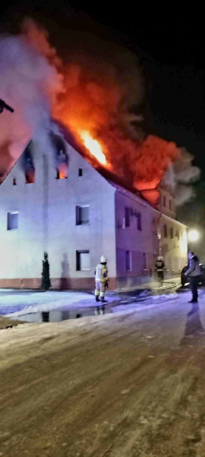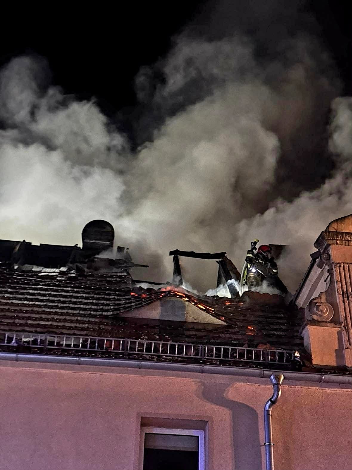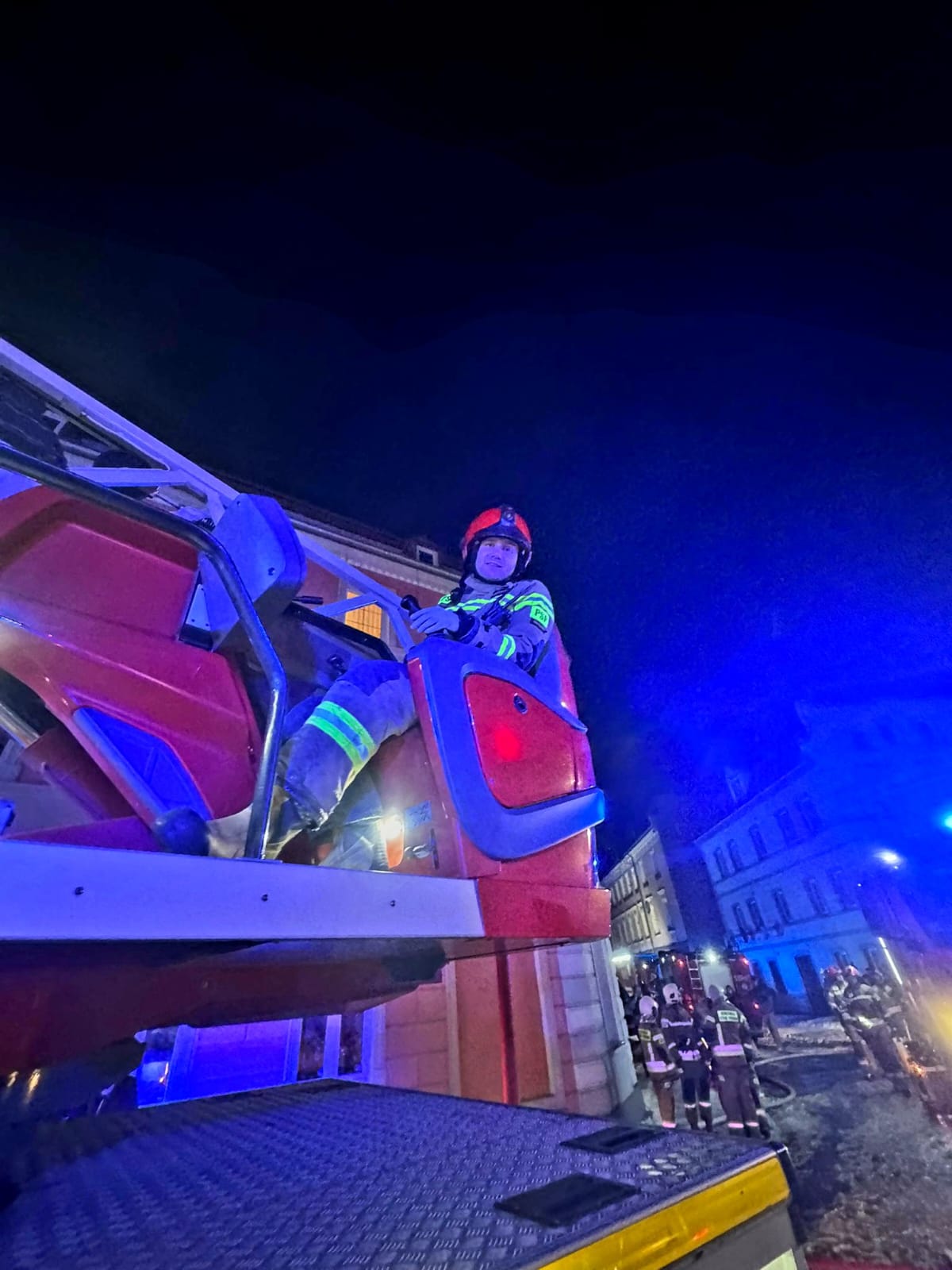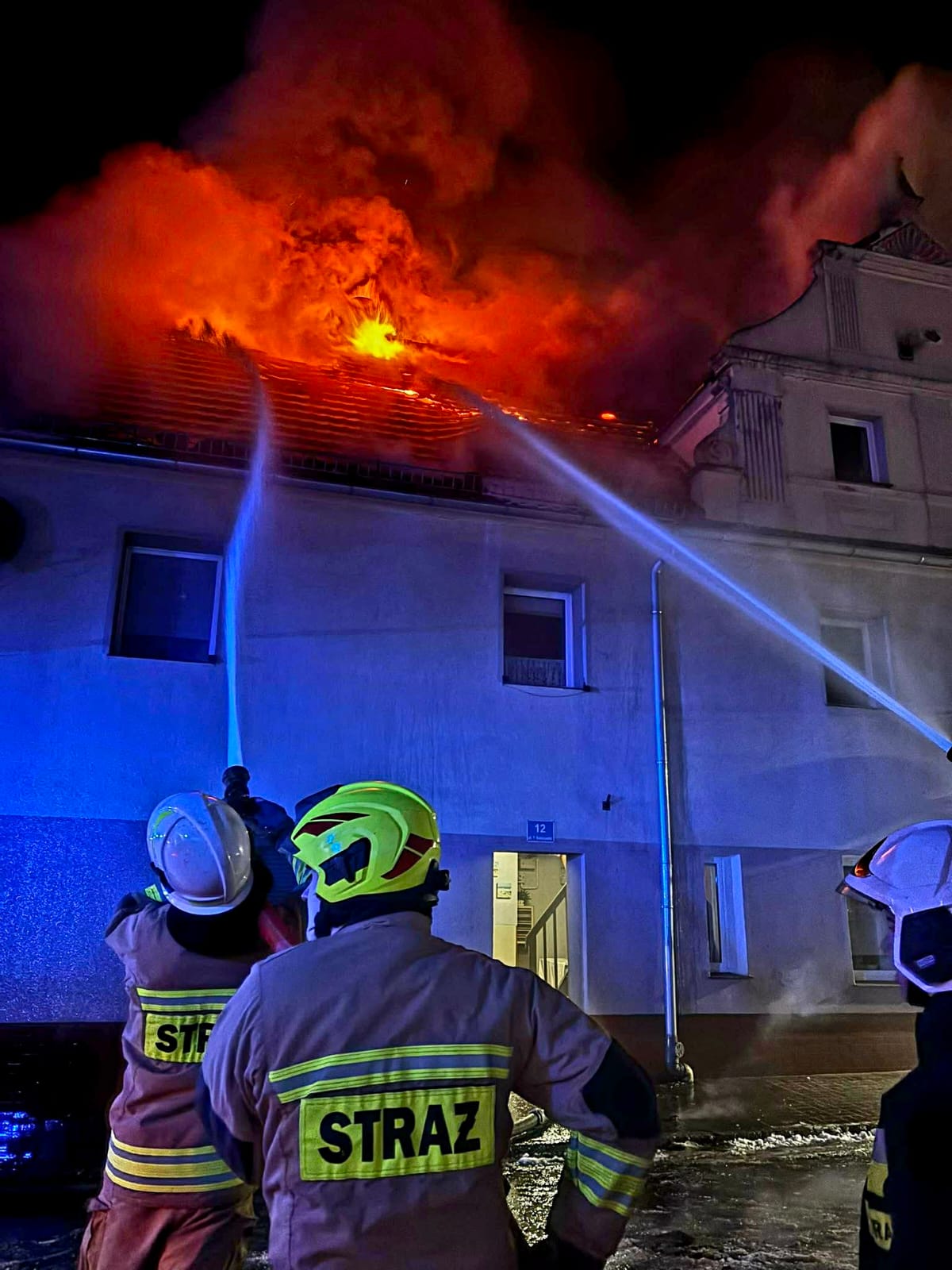 Po przybyciu pierwszych zastępów ochrony przeciwpożarowej na miejsce zdarzenia stwierdzono rozwinięty pożar mieszkania, który ze względu na dużą intensywność spalania oraz konstrukcję budynku bardzo szybko rozprzestrzenił się na część dachową obiektu.