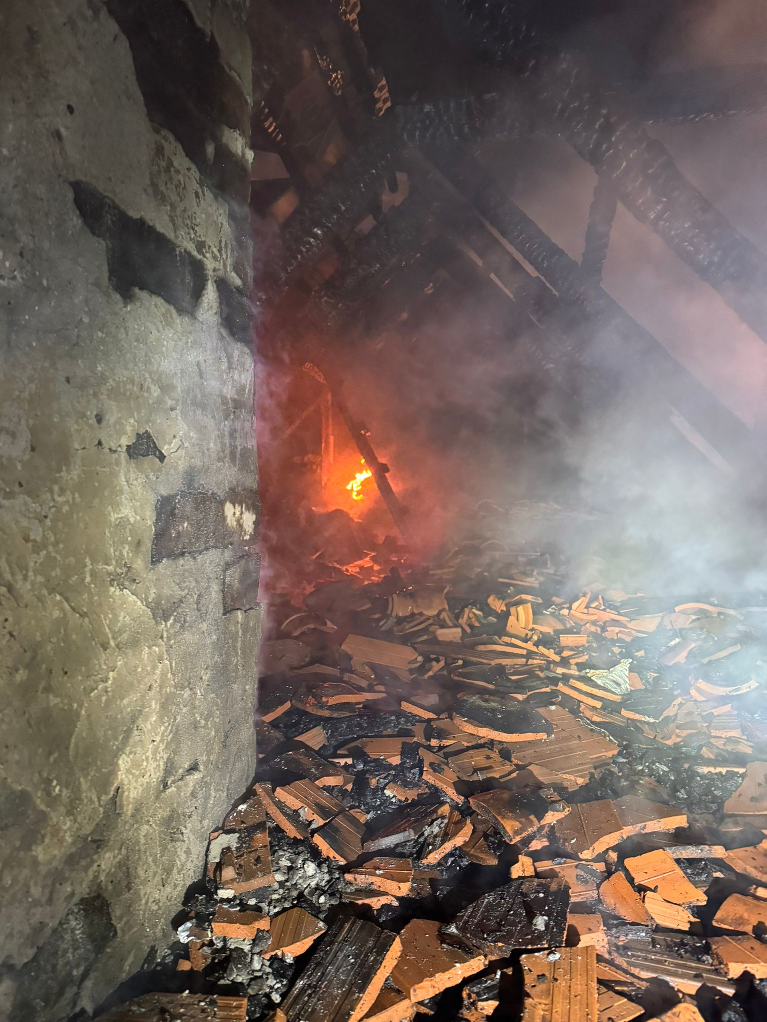Około godziny 20:00 pożar został zlokalizowany. Ze względu na znaczne zniszczenia konstrukcji dachu oraz występowanie licznych zarzewi ognia, dalsze działania polegały na dogaszaniu oraz częściowej rozbiórce nadpalonych elementów konstrukcyjnych.
