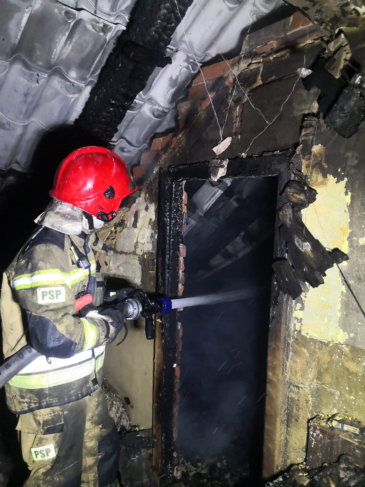 Akcja zakończyła się po godz. 6 rano, a o godz. 14 strażacy ponownie zostali zadysponowani do uszkodzonego w wyniku pożaru budynku w celu jego zabezpieczenia przed gwałtownymi opadami deszczu. Strażacy przy użyciu drabiny mechanicznej zabezpieczyli otwory okienne w dachu plandekami.