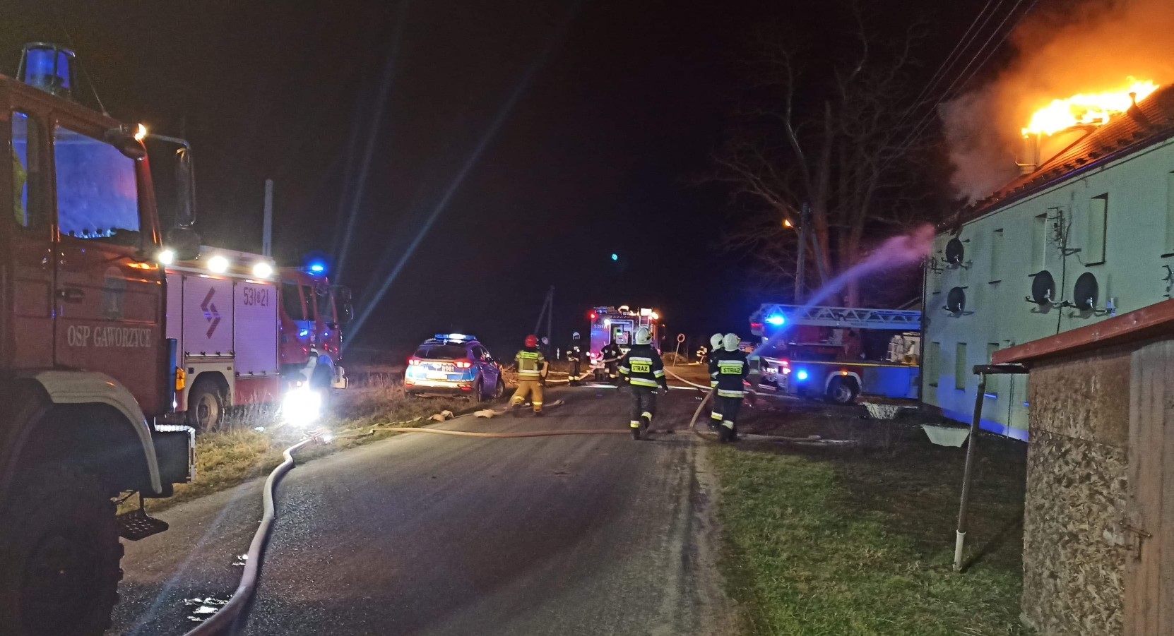 20 marca 2021 r. o godz. 23.38 do Stanowiska Kierowania KP PSP w Polkowicach wpłynęło zgłoszenie o pożarze budynku wielorodzinnego w Dzikowie Gm. Gaworzyce. Na miejsce zdarzenia łącznie zostało zadysponowanych 11 zastępów straży pożarnej 34 strażaków z terenu powiatu polkowickiego i głogowskiego. Strażacy po dotarciu na miejsce zdarzenia stwierdzili, że pali się poddasze budynku wielorodzinnego, ogień wychodzi na dach, a z budynku ewakuowało się przed naszym przybyciem 18 jego mieszkańców. Działania strażaków polegały na zabezpieczeniu terenu akcji, podaniu sześciu prądów wody, wyniesieniu z mieszkań butli z gazem propan butan, oświetleniu terenu akcji, monitorowaniu pogorzeliska przy użyciu kamery termowizyjnej.