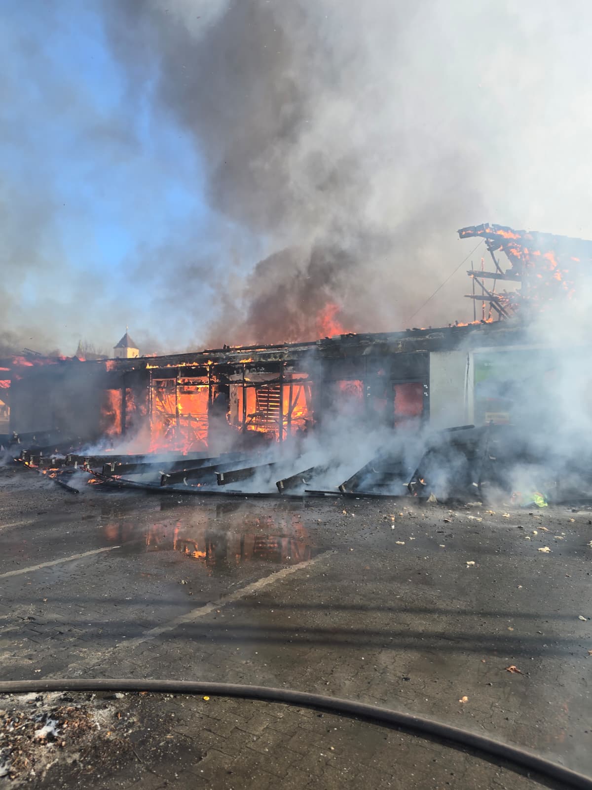 Budynek supermarketu uległ całkowitemu zniszczeniu. Straty materialne są bardzo duże.