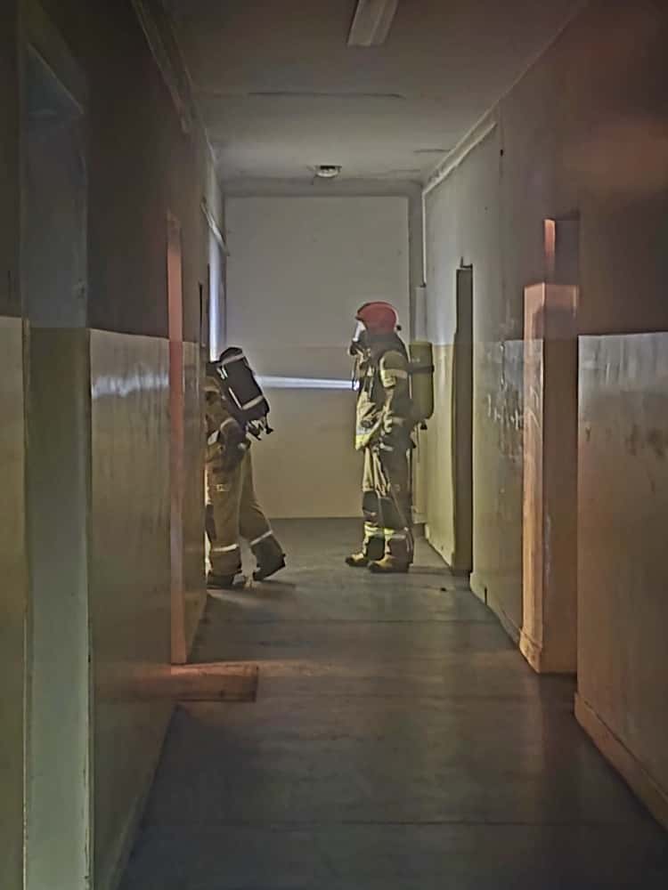 Po przybyciu na miejsce Kierujący Działaniem Ratowniczym potwierdził pożar wersalki na korytarzu oraz silne zadymienie na klatce schodowej. Droga ewakuacyjna została całkowicie odcięta, co uniemożliwiało mieszkańcom samodzielne opuszczenie budynku.