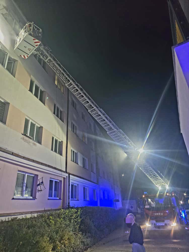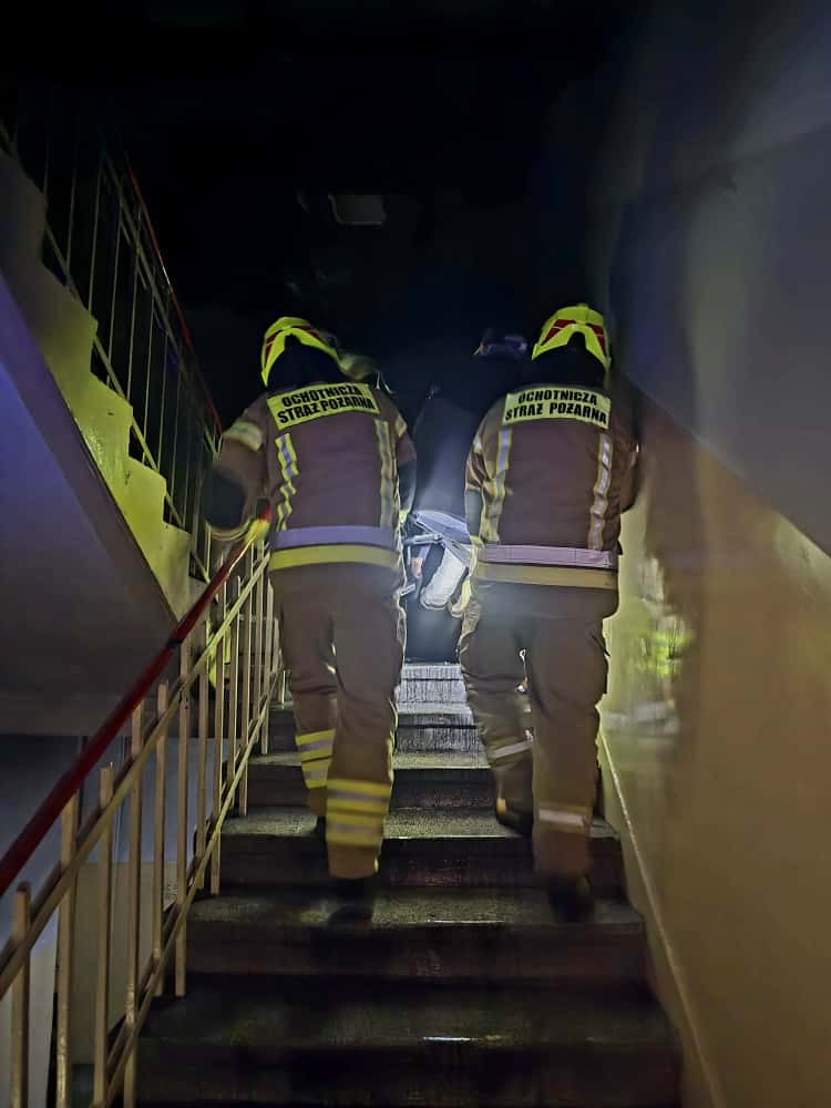 6 listopada 2025 r., godz. 23:13 do Stanowiska Kierowania Komendanta Powiatowego PSP w Polkowicach wpłynęło zgłoszenie o pożarze na pierwszym piętrze budynku mieszkalnego przy ul. Legnickiej w Polkowicach. Z przekazanych informacji wynikało, że osoby przebywające na wyższych kondygnacjach mają odciętą drogę ewakuacji z powodu gęstego dymu.