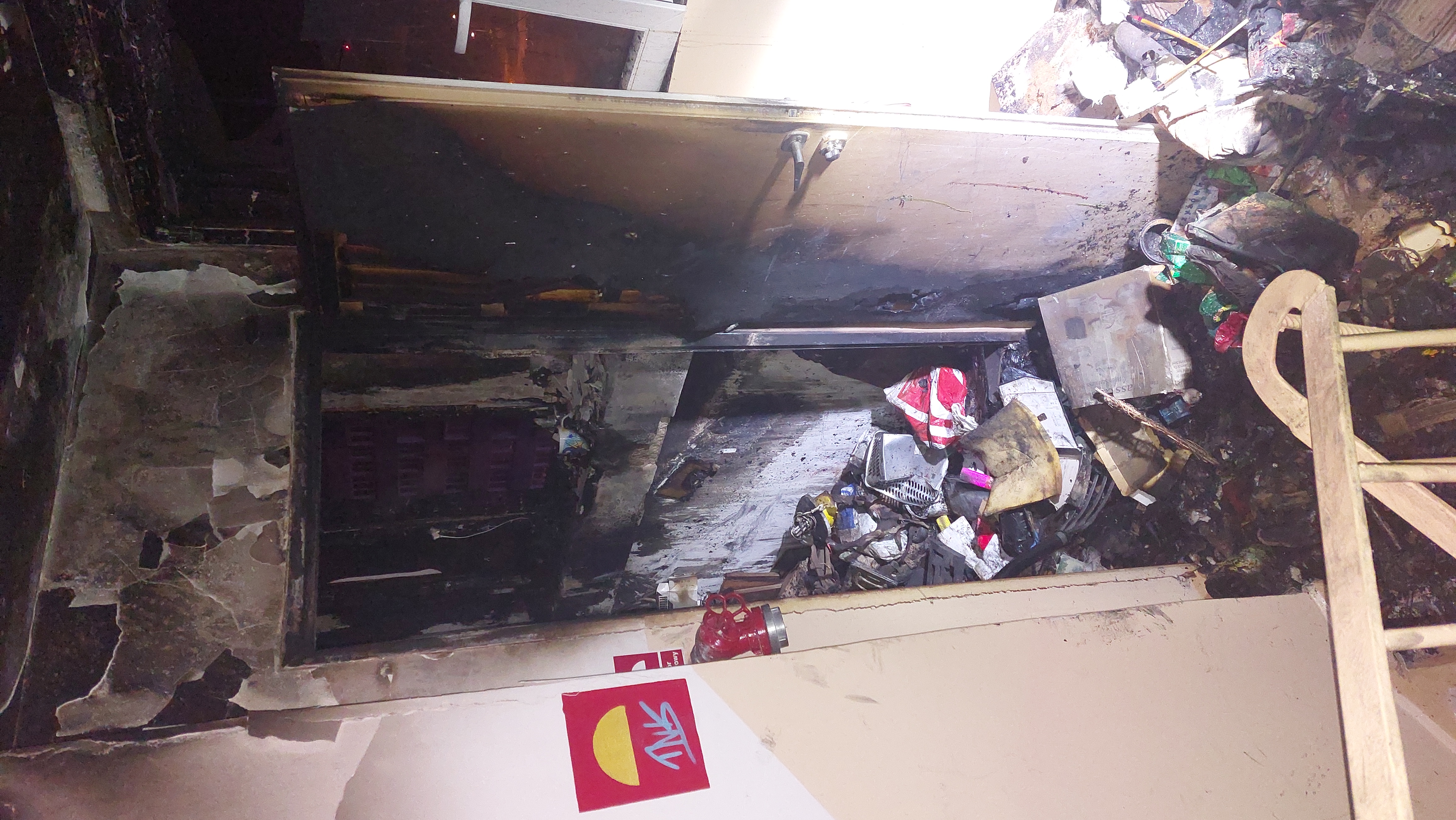 Na miejscu zdarzenia strażacy, na ósmym piętrze, zastali pożar komórki lokatorskiej oraz silne zadymienie uniemożlwiające bezpieczną ewakuację mieszkańców. Do wnętrza obiektu wprowadzono roty w sprzęcie ochrony dróg oddechowych, których zadaniem było ugaszenie pożaru oraz oddymienie obiektu. Pożar został ugaszony, a budynek wielorodzinny został sprawdzony miernikiem wielogazowym na obecność gazów niebezpiecznych. Nadpalone elementy wyposażenia komórki lokatorskiej zostały wyniesione na zewnątrz.