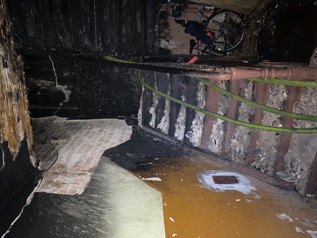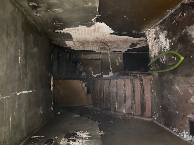 W pożarze częściowemu spaleniu uległa klatka schodowa budynku