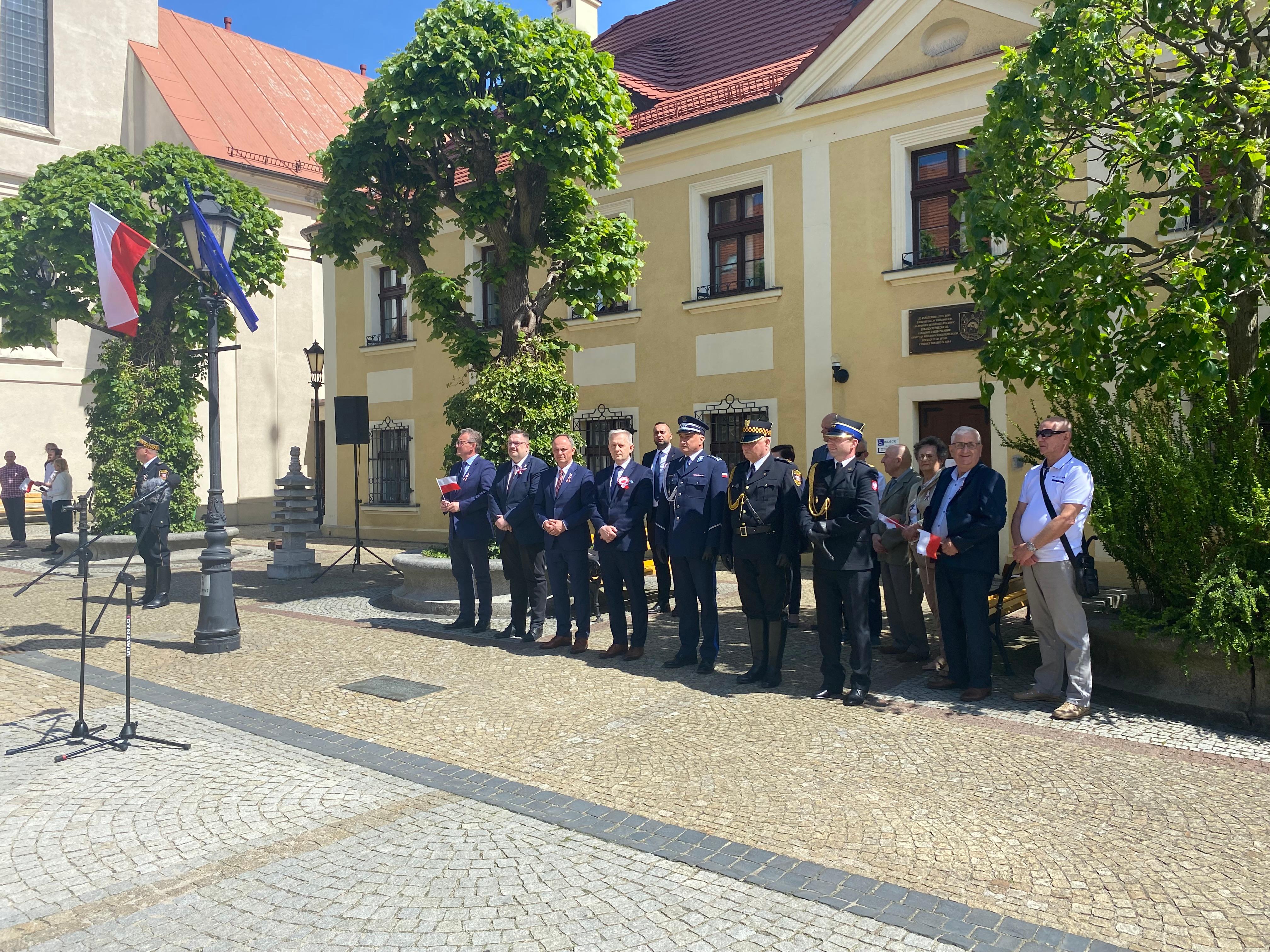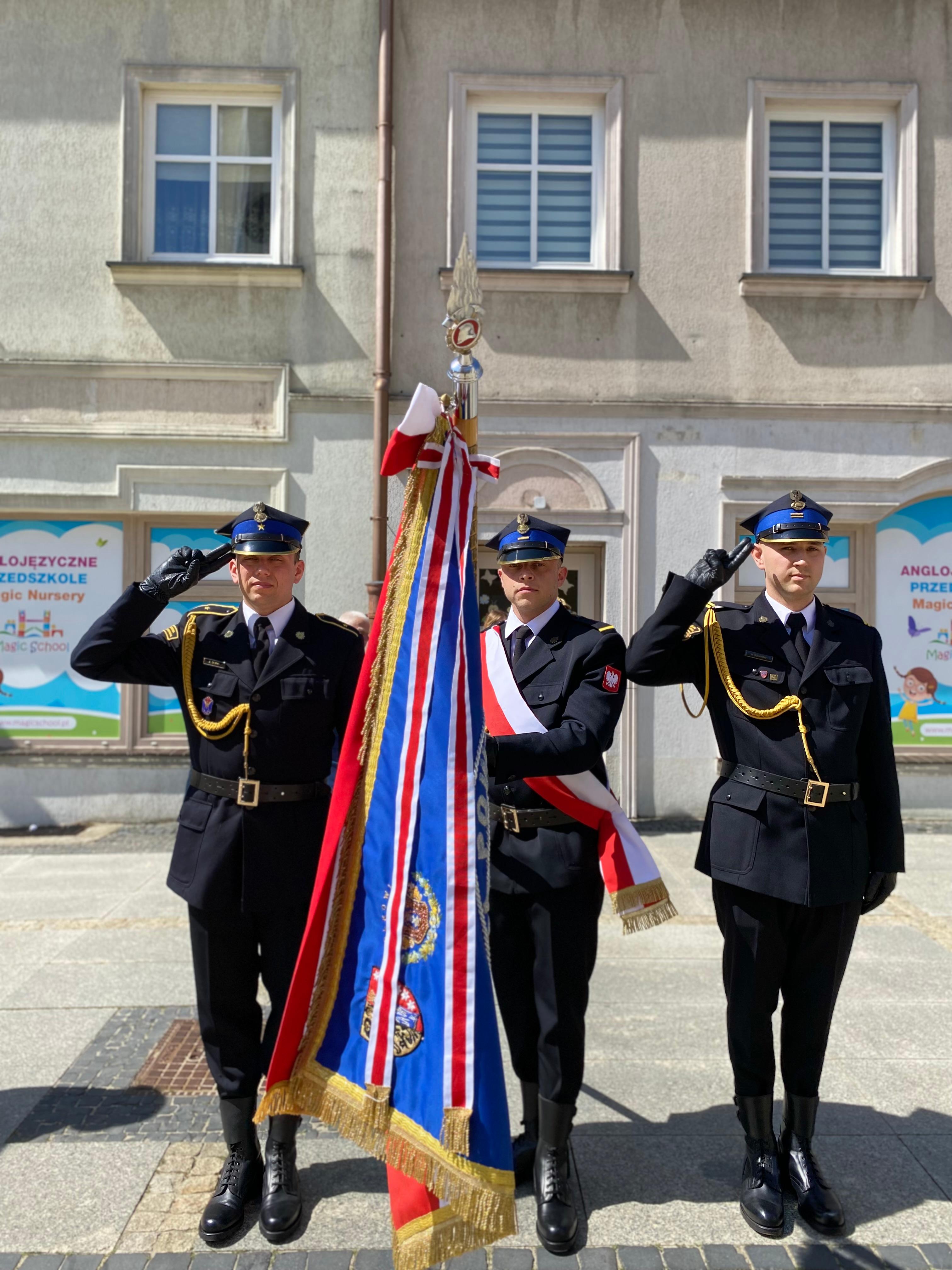 O godzinie 12.00 na polkowickim rynku sztandar Komendy Powiatwej PSP w Polkowicach wspólnie z włądzami samorządowymi, mieszkańcami wziął udział w uroczystmy podniesieniu flagi państwowej RP.