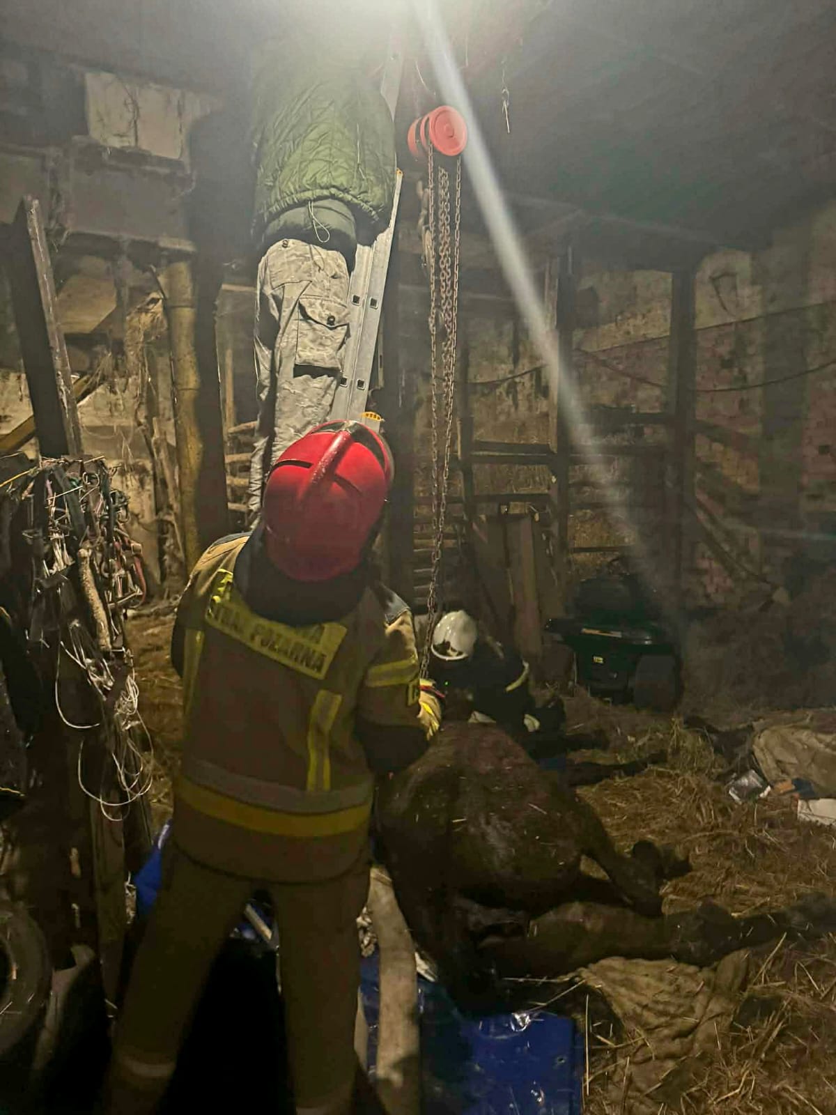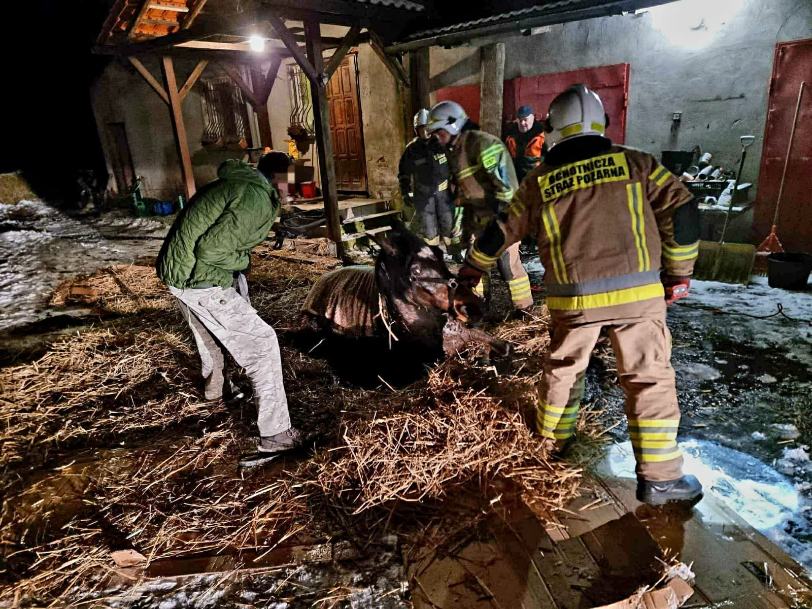 W godzinach wieczornych do Stanowiska Kierowania Komendanta Powiatowego PSP w Polkowicach wpłynęło zgłoszenie dotyczące konia, który poślizgnął się na oblodzonej nawierzchni i nie był w stanie samodzielnie wstać.