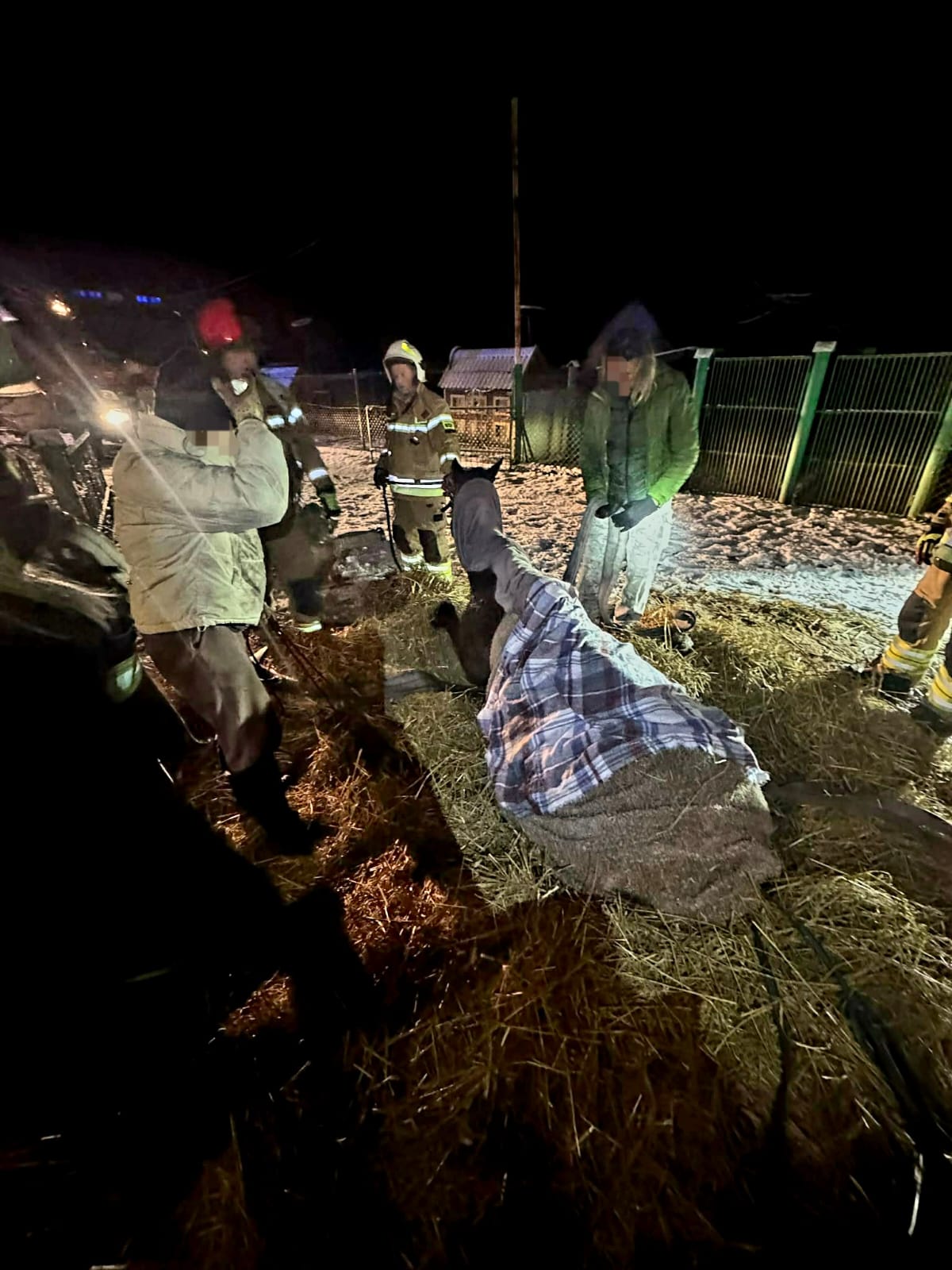 Po przybyciu na miejsce zdarzenia strażacy stwierdzili, że klacz doznała urazu oraz nie współpracowała podczas prób podniesienia jej przy użyciu lin. Zwierzę zostało bezpiecznie ułożone na boku, zabezpieczone plandeką i w takiej pozycji przetransportowane do stajni.
