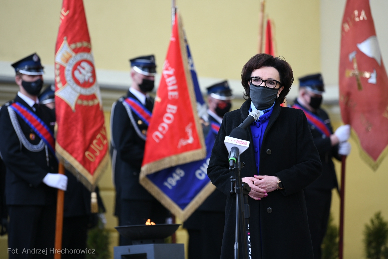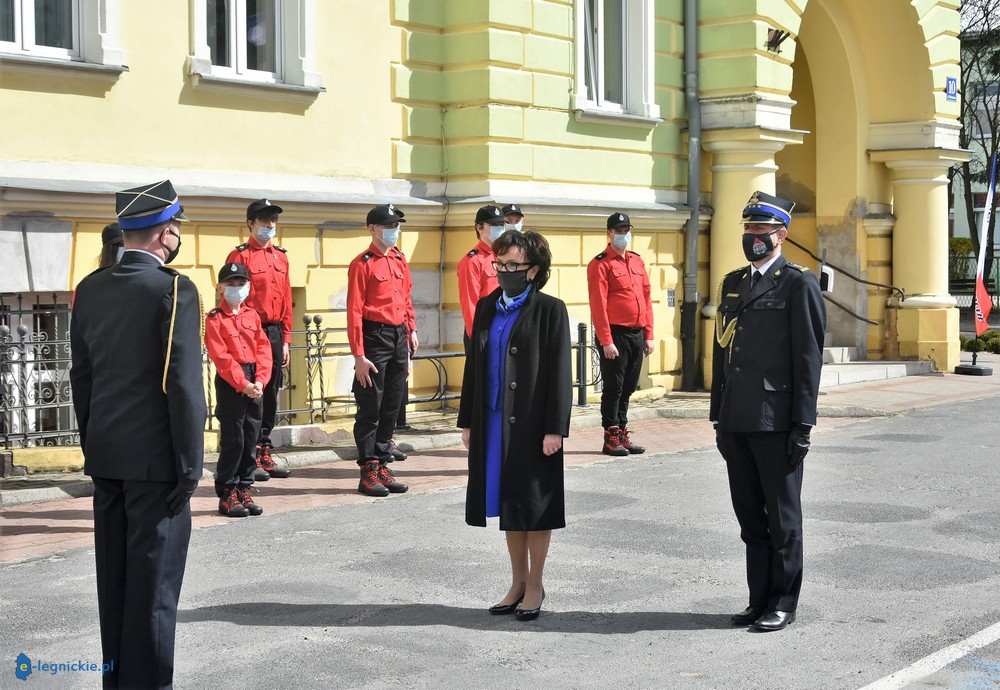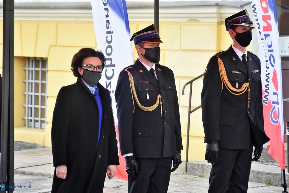 Pani Marszałek podkreśliła, że Straż Pożarna cieszy się w społeczeństwie ogromnym szacunkiem. "Ale na ten szacunek trzeba było sobie zapracować i robicie to od wielu lat. Wy nie macie zawodu, wy pełnicie służbę, trudną odpowiedzialną, poświęcacie siebie dla innych; ratujecie zdrowie, życie i mienie innych ludzie" - powiedziała pani Marszałek.