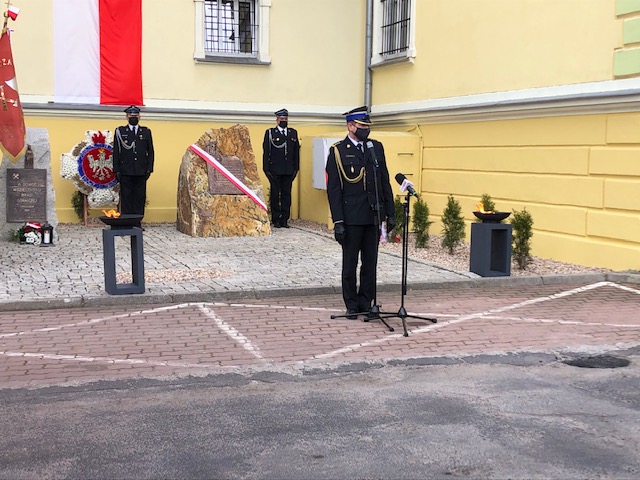 uroczyste odsłonięcie pomnika w hołdzie strażakom