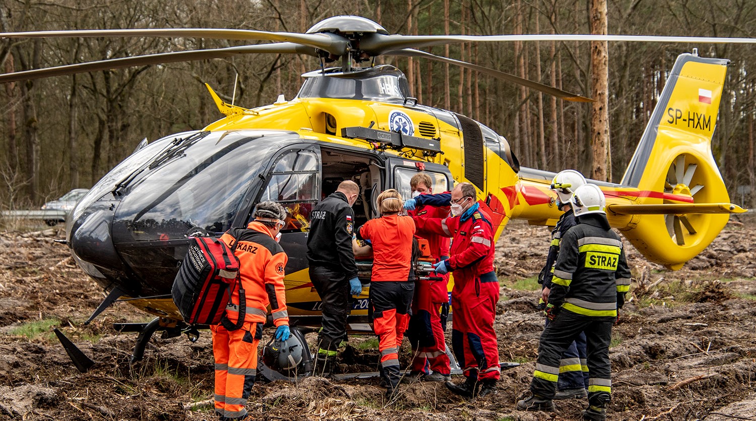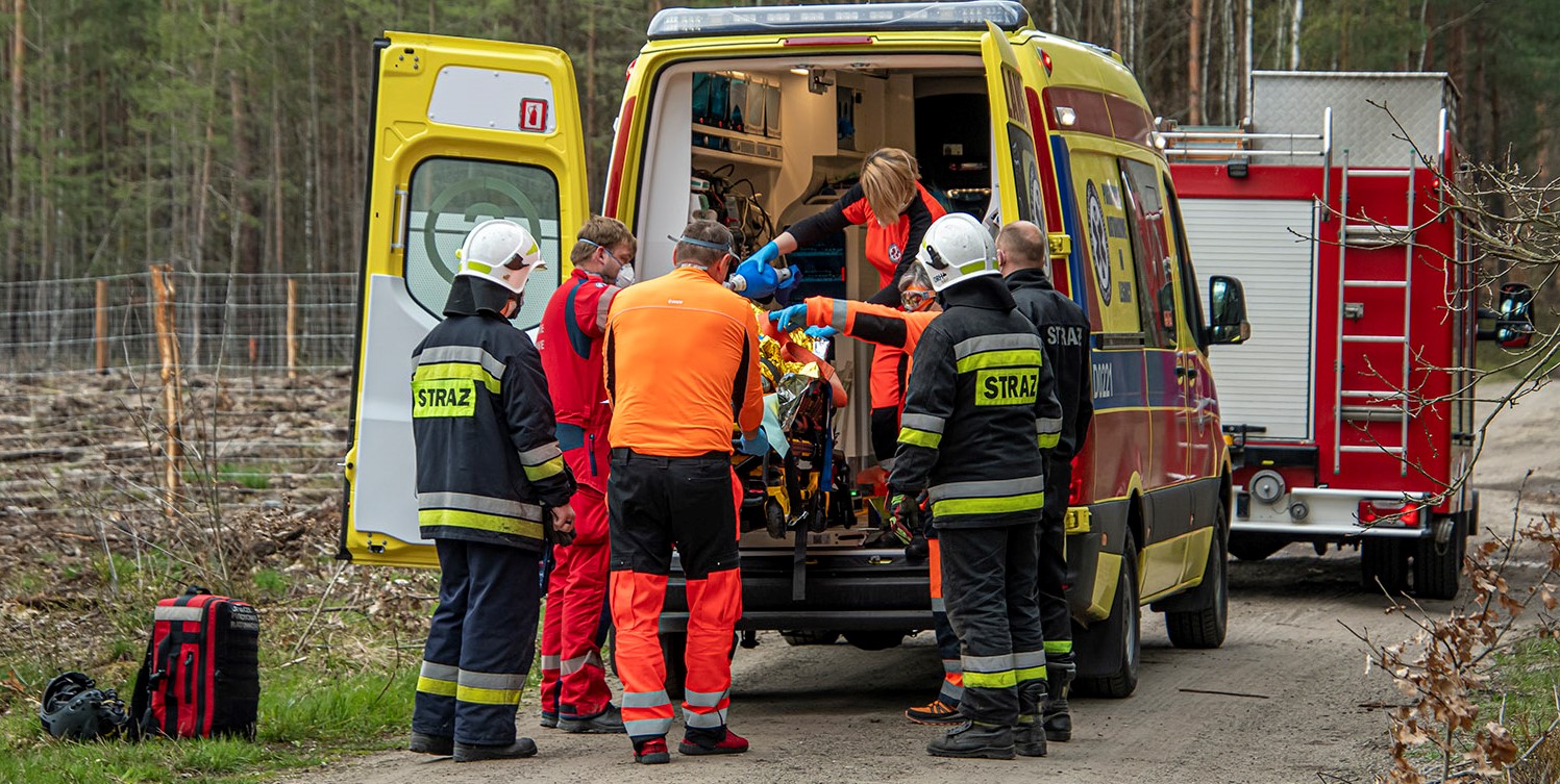 Zastępy ratownicze po dojeździe na miejsce zdarzenia stwierdziły, że wszystkie osoby jadące samochodem znajdują się poza nim. Strażacy do czasu przekazania poszkodowanych zastępom ZRM udzielali im kwalifikowanej pierwszej pomocy.