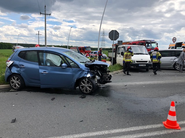 27 maja 2021 r. o godzinie 14.27 na skrzyżowaniu drogi wojewódzkiej 333 z drogą powiatową nr 1135D na wysokości m. Kaźmierzów doszło do zderzenie trzech pojazdów. W pojazdach podróżowało 6 uczestników. Strażacy po przyjeździe, zabezpieczyli miejsca zdarzenia oraz udzielili KPP trzem osobom poszkodowanym, które zostały przekazane zespołom Ratownictwa Medycznego. Jedna poszkodowana osoba, kierowca Forda Transita została zabrana do szpitala. Następnie strażacy odłączyli akumulatory w uszkodzonych pojazdach oraz dokonali sorpcji plamy powstałej na jezdni.