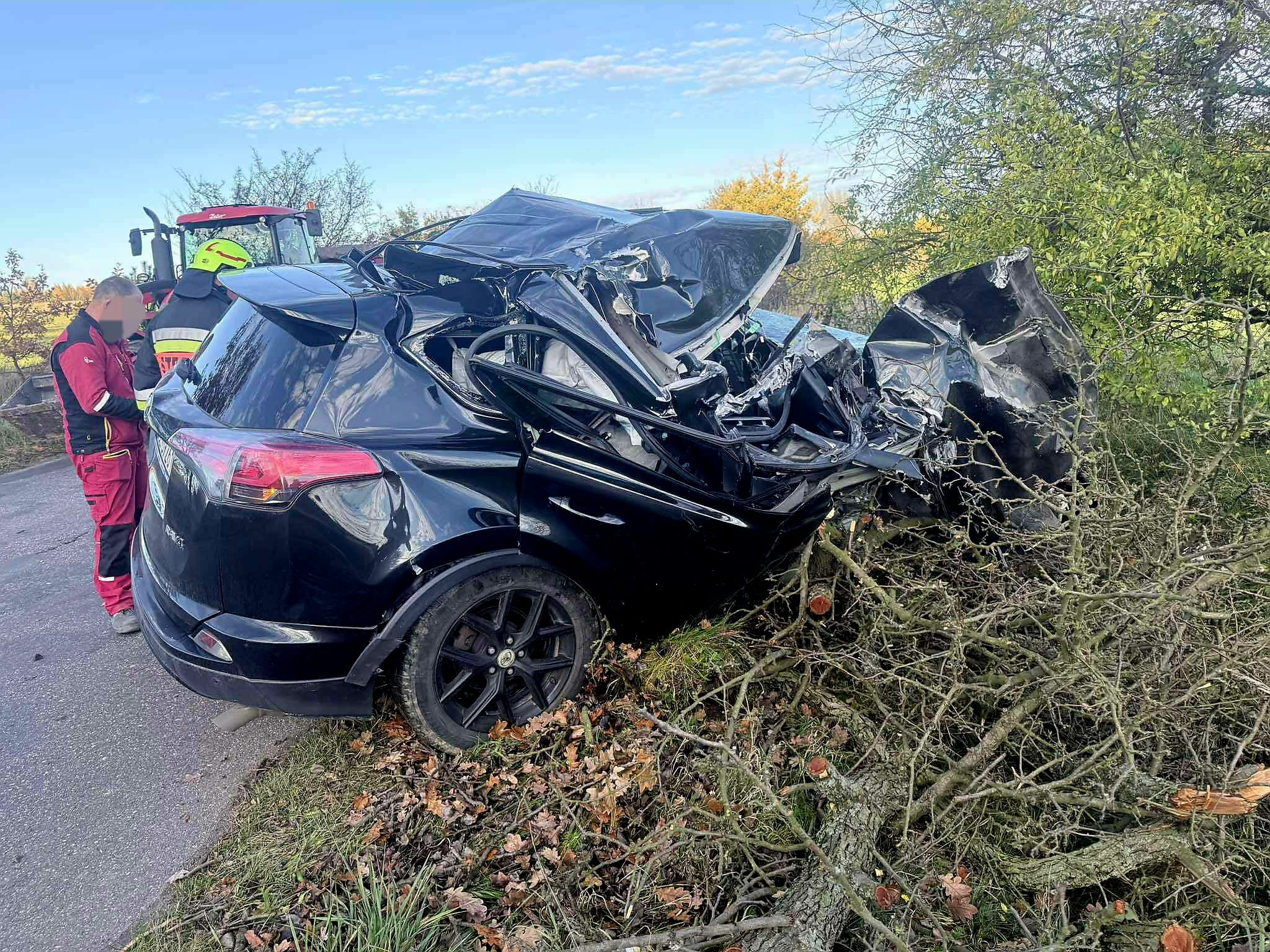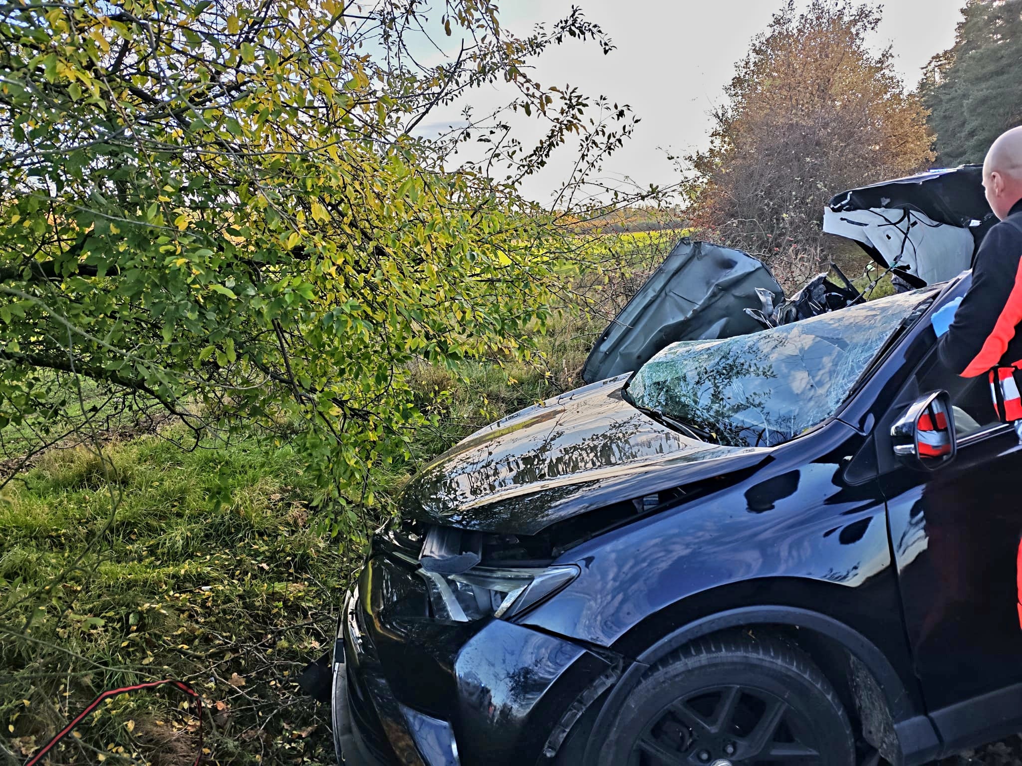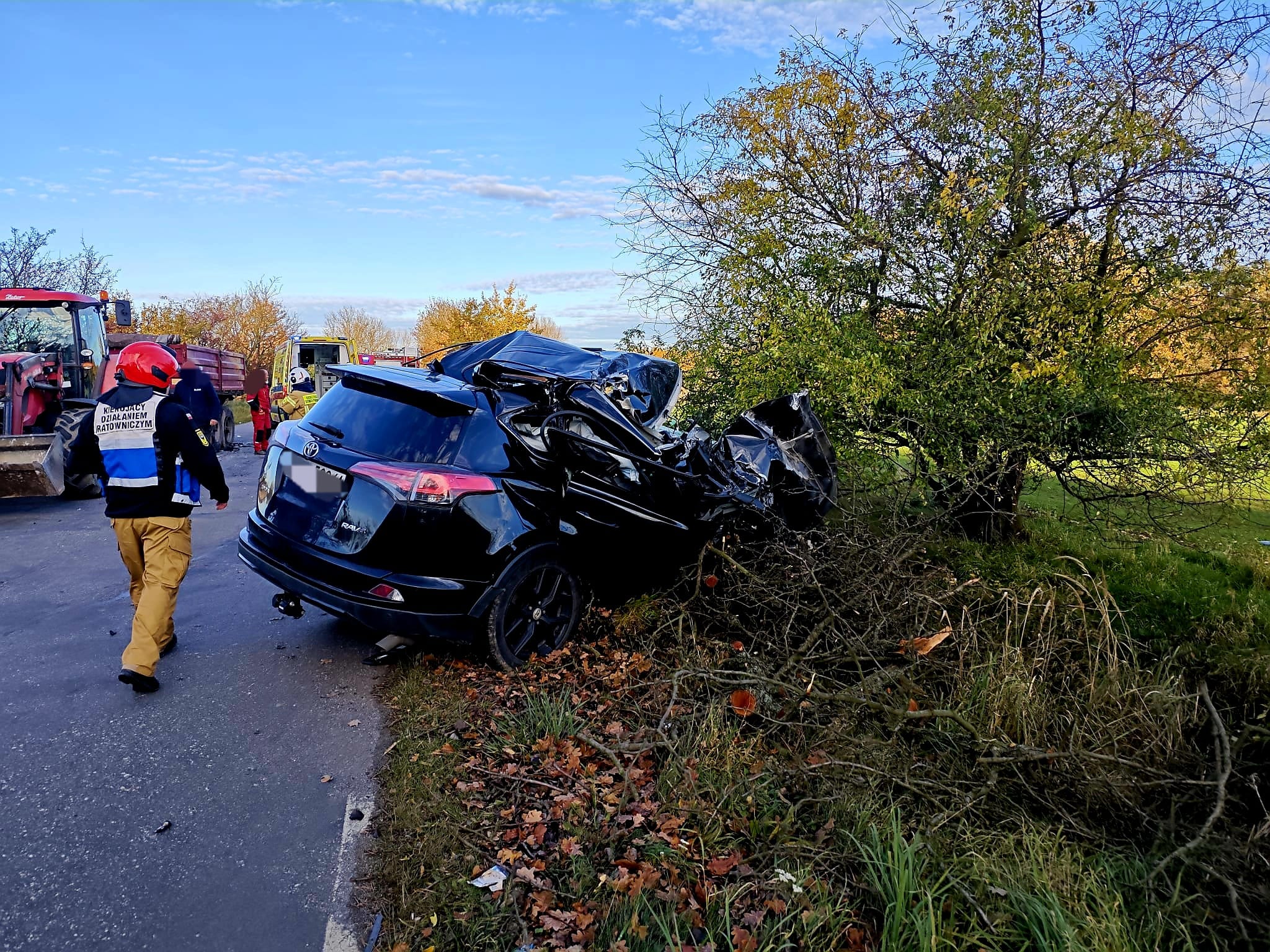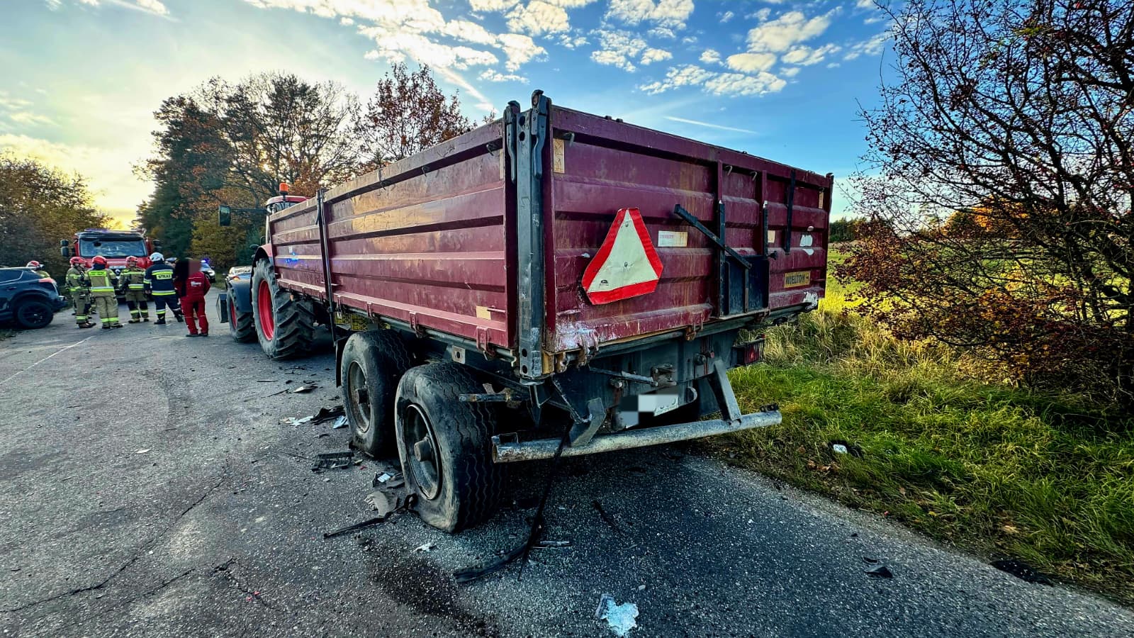 Kierujący samochodem osobowym marki Toyota najechał na tył przyczepy rolniczej. W wyniku zderzenia pojazd osobowy został poważnie uszkodzony, a 47-letni kierowca odniósł obrażenia i został przekazany zespołowi ratownictwa medycznego. Kierujący ciągnikiem nie odniósł obrażeń.