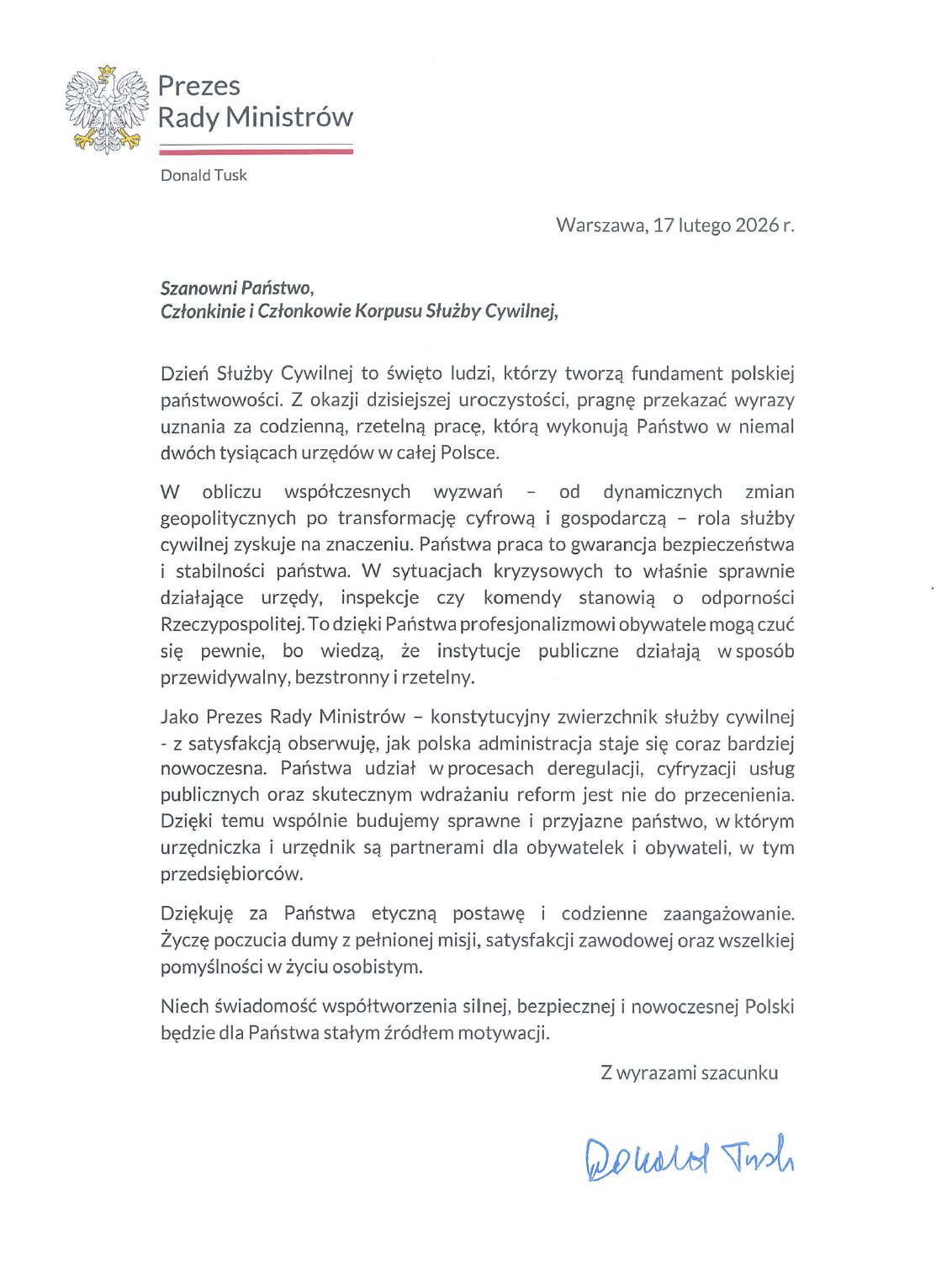 Życzenia z okazji Dnia Służby Cywilnej - 2026 Materiały List_Prezesa_Rady_Ministrów_na_Dzień_Służby_Cywilnej_2026 List_Prezesa_Rady_Ministrów_na_Dzień_Służby_Cywilnej_2026.pdf 0.26MB Zdjęcia (1) Pokaż zdjęcie 1 z galerii.