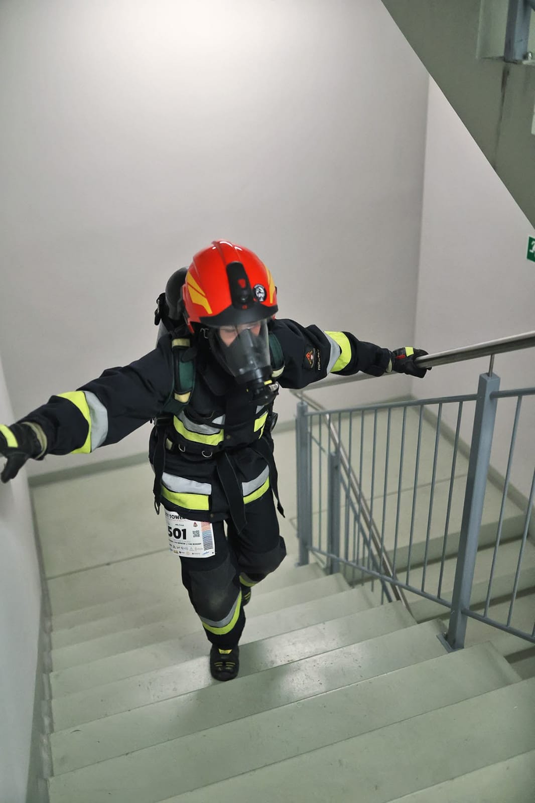 01.04.2023 roku odbył się bieg na terenie obiektu Sky Tower w tzw. wieży, położonej we Wrocławiu przy ul. Powstańców Śląskich 95. Zawodnicy mieli do pokonania 49 pięter, 1142 schody i 212 metrów w pionie. Komendę Powiatową PSP w Proszowicach reprezentowali: st. str. Sebastian Cieślik i st. str. Kamil Wiącek. Strażacy startowali w oddzielnej kategori więc wymagający bieg musieli pokonać w umundurowaniu specjalnym, butach specjalnych, rękawicach specjalnych, hełmie strażackim oraz aparacie powietrznym na plecach z podpiętym automatem oddechowym do maski.