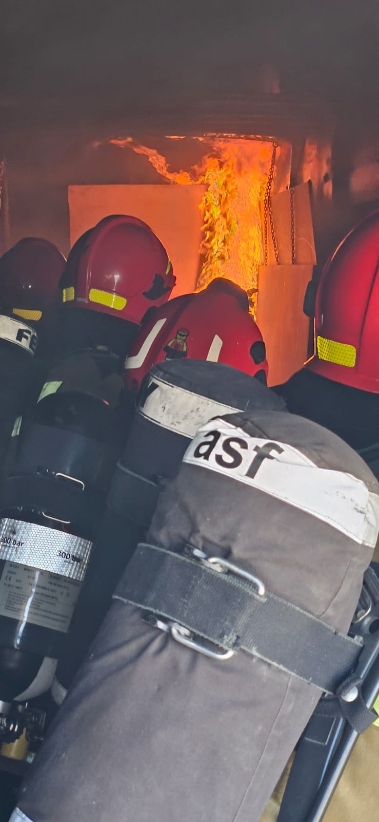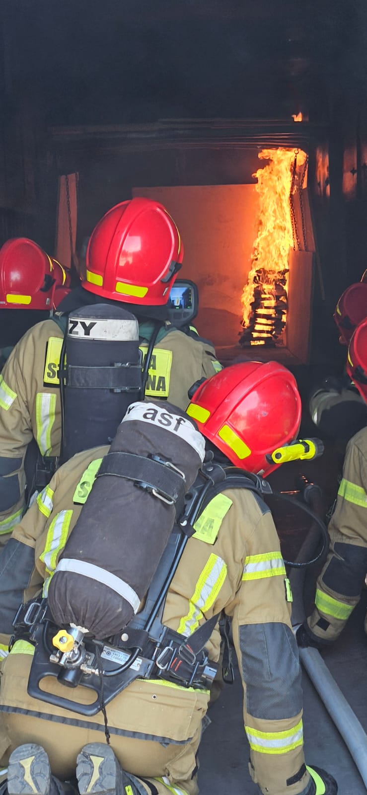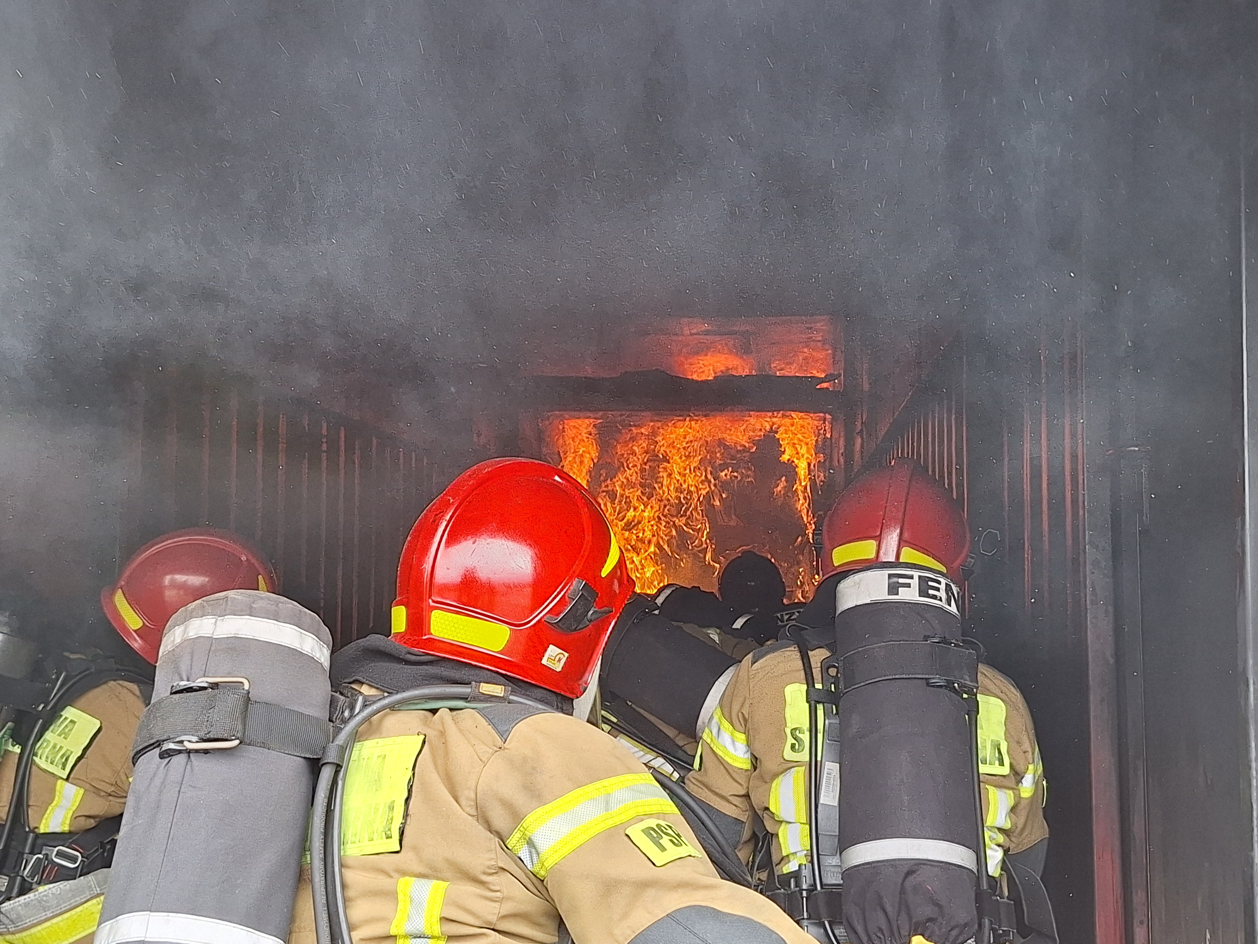 Ćwiczenia w kontenerze ogniowym z zakresu gaszenia pożarów wewnętrznych