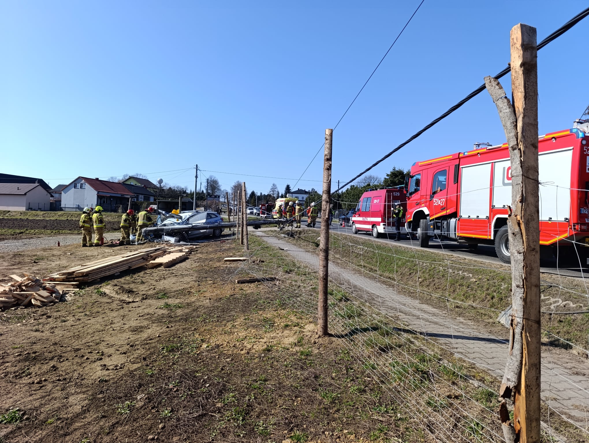 W działaniach brały udział: dwa pojazdy JRG Proszowice, OSP Posądza, OSP Biórków Mały, Policja, ZRM, Pogotowie Energetyczne, Biegły Sądowy.